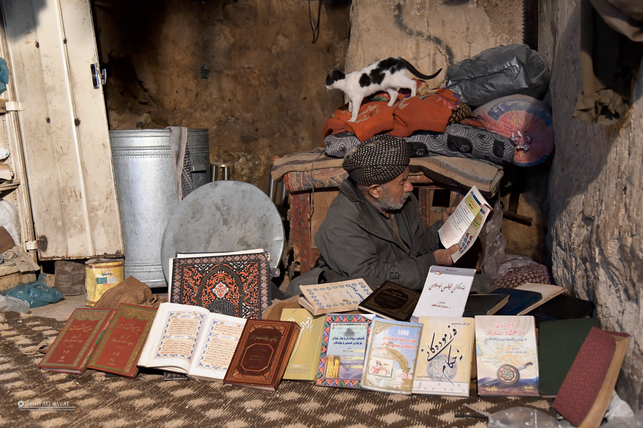 Mullah Qaraman was about 80 years old when, because of his love for learning, he set up a library in the corner of his small mud house. He owned more than 100 books in Kurdish and Arabic, most of which were historical. When he returned home after work, , he spent a few hours reading them each night. To this day, Mullah Qaraman continues his work and serves the village of Biran. In recent years, their son, with his father’s support, has married and built a family.