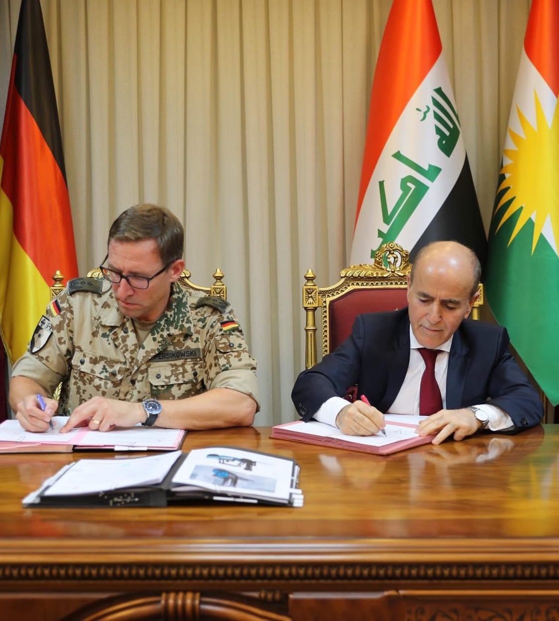 ?? continues its support for #Peshmerga particularly for Peshmerga reform. For this purpose project agreements worth 3.2 mio. € have been signed yesterday in Erbil by @Bw_Einsatz and @KRG_MOPE. pic.twitter.com/8rSMy3TwNV