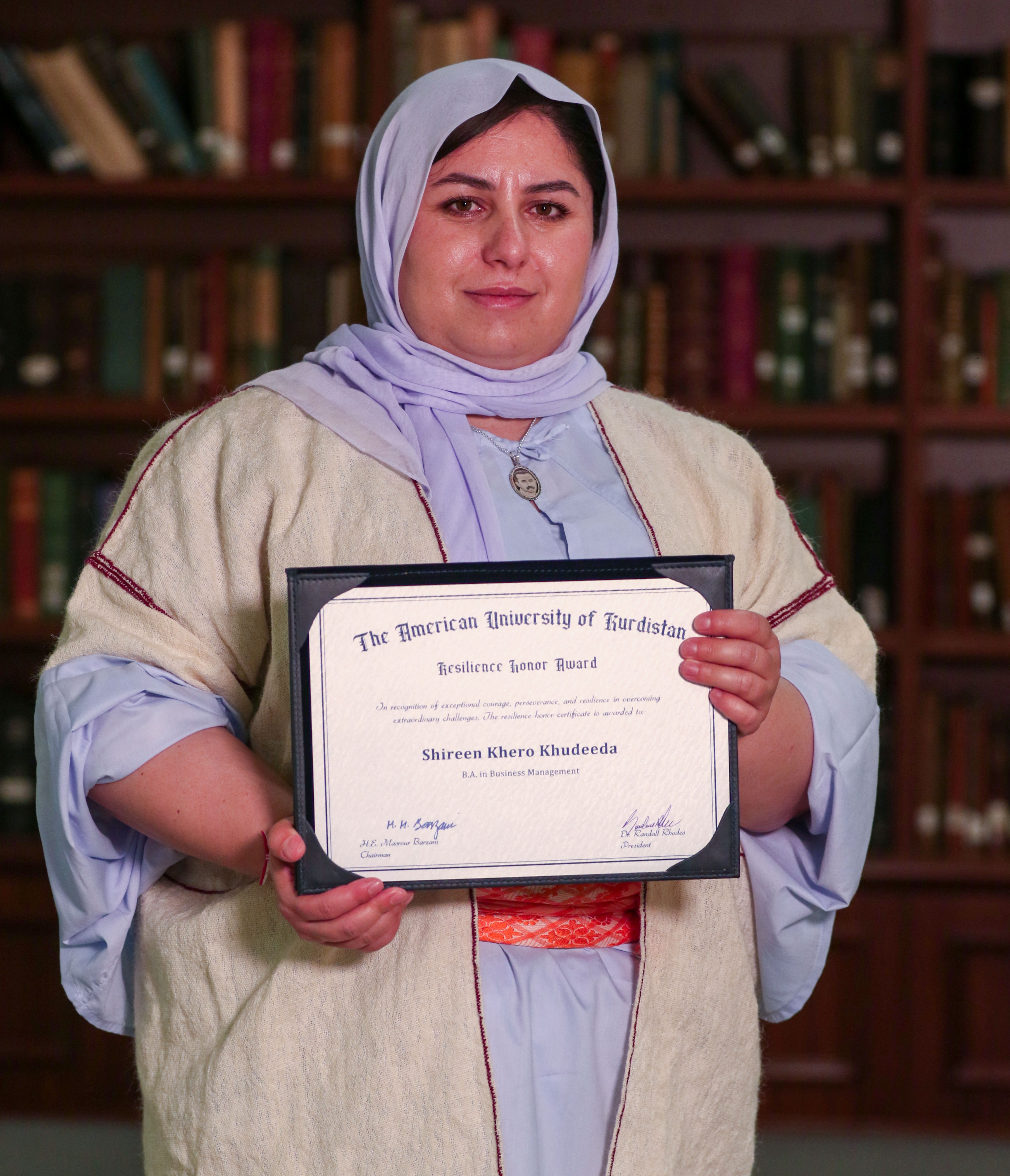 “Khero truly embodies resilience,” said Khidher Domle, a friend of Khero who attended her graduation. “There are three reasons why she deserved the Honor of Resilience. First, after escaping ISIS, Shireen didn’t let the trauma define her. She found the strength to continue her education. Second, she tirelessly used all her connections to rescue her sister and family, who were also captured by ISIS. Third, Shireen bravely raised her voice. She traveled to cities like Baghdad to speak out about the crimes committed by ISIS and advocate for the rights and protection of the Yezidis.”