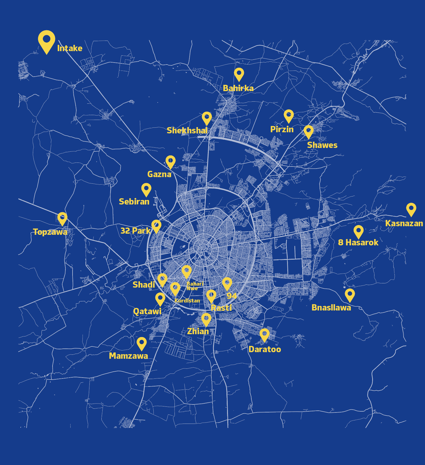 The Erbil Emergency Water Supply Project will channel water from the Great Zab River to a designated location on the outskirts of Erbil, where 480,000 cubic meters of water will be treated and pumped into the city network. This amount of potable water is said to be sufficient for 1.5 million people. In other words, the project will cover 60% of the capital city’s demand, while the remaining 40% will be met by the three preexisting water treatment plants.