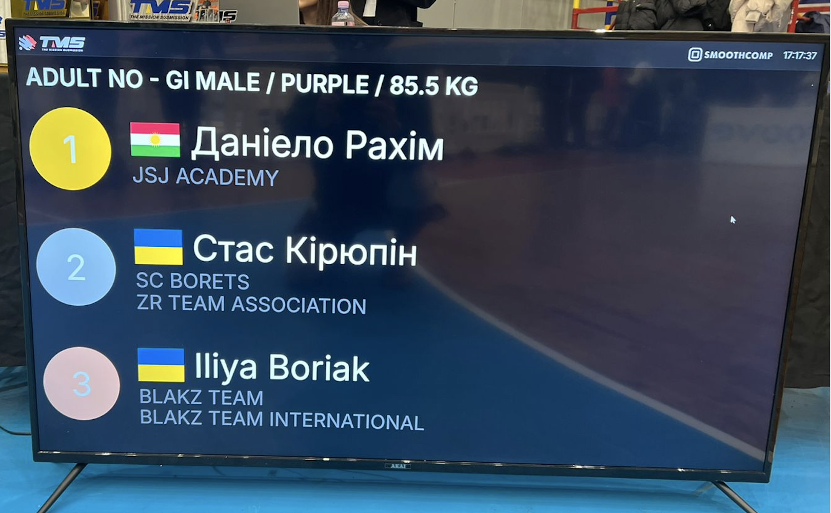 Danielo Rahim, known as “Mir Kurd,” a 22-year-old Kurdish martial artist residing in Ukraine, won first place in the Brazilian Jiu-Jitsu competition held in Kyiv, the country’s capital.