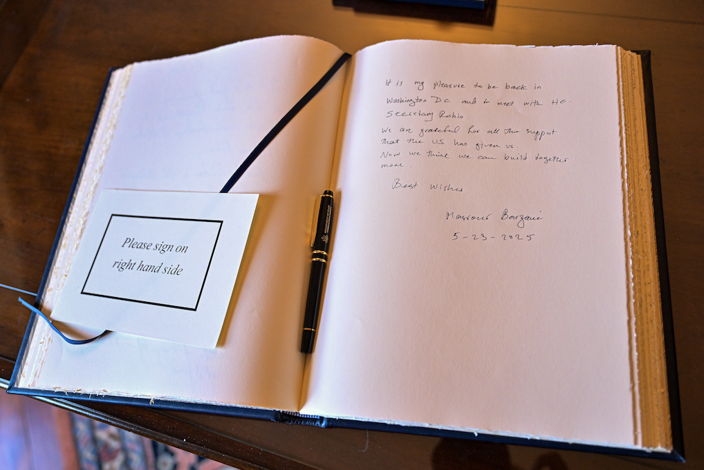 In a traditional gesture, Prime Minister Barzani left a note in a special book at the U.S. Department of State, where only distinguished visitors can leave messages. He wrote, “It is my pleasure to be back in Washington, D.C., and to meet with His Excellency, Secretary Rubio. We are grateful for all the support that the United States has given us. Now, we believe we can build together.”