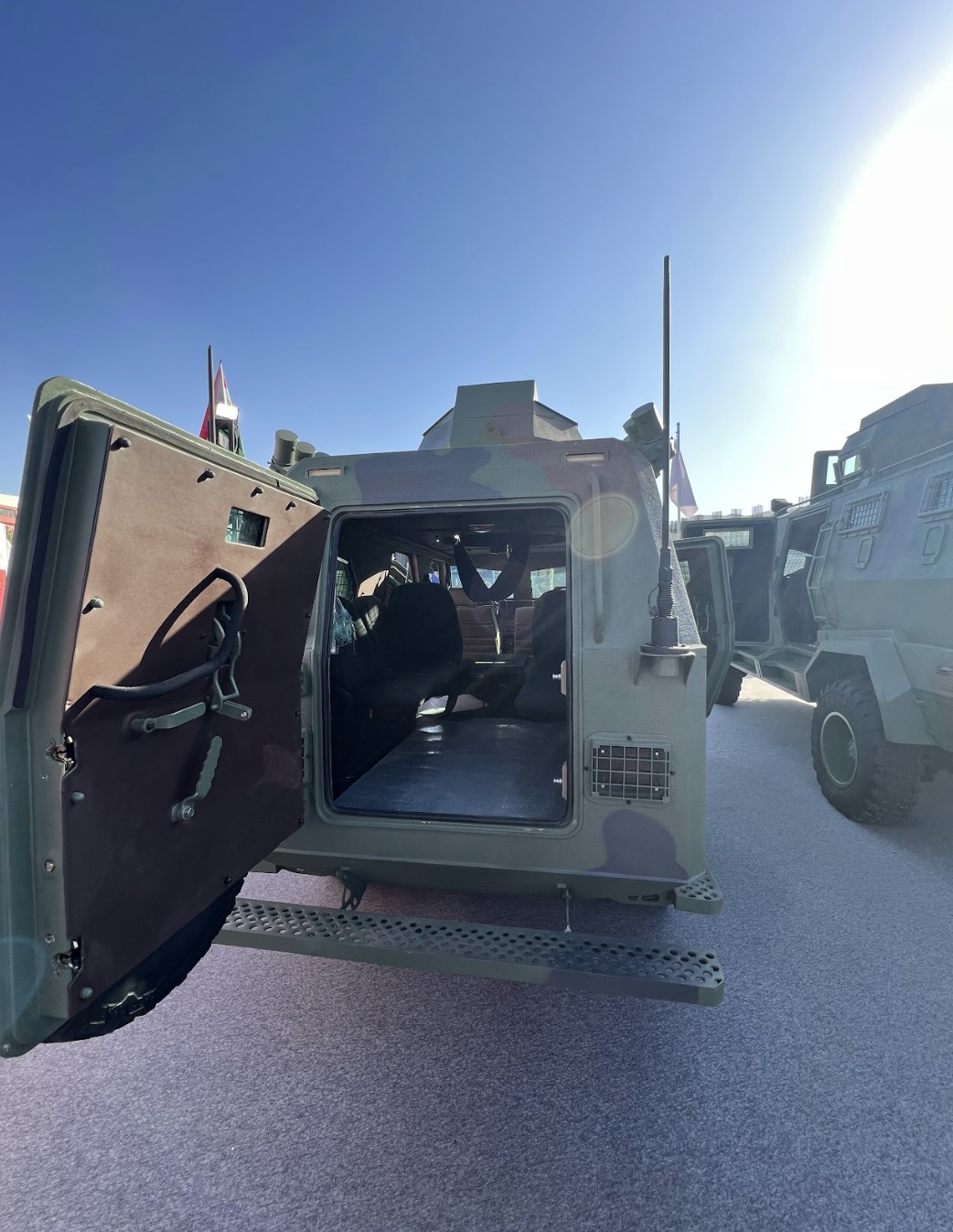 Atroshi explained the multilayer armor system: “The first layer is six millimeters, the second eight, and the third 12. Inside, we have a camera system for external monitoring and a reinforced emergency compartment.”