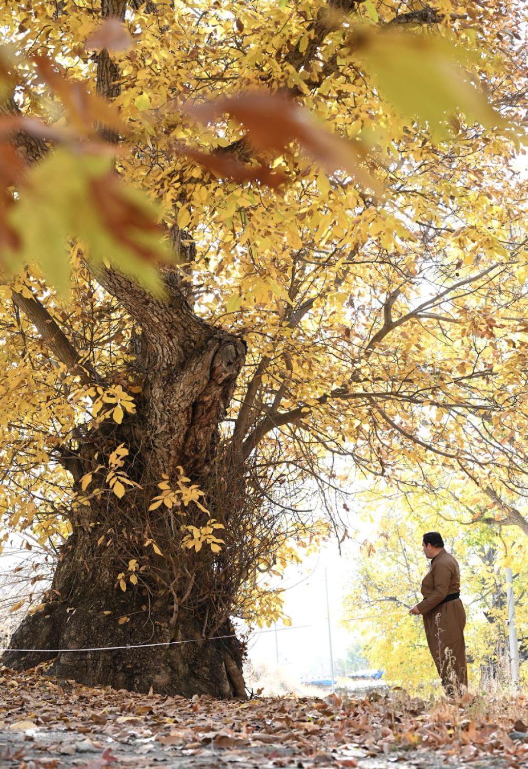 High in the chill, misty hills of Penjwen, in the Kurdistan Region’s Sulaymaniyah Governorate, a single walnut tree burns with autumn color.