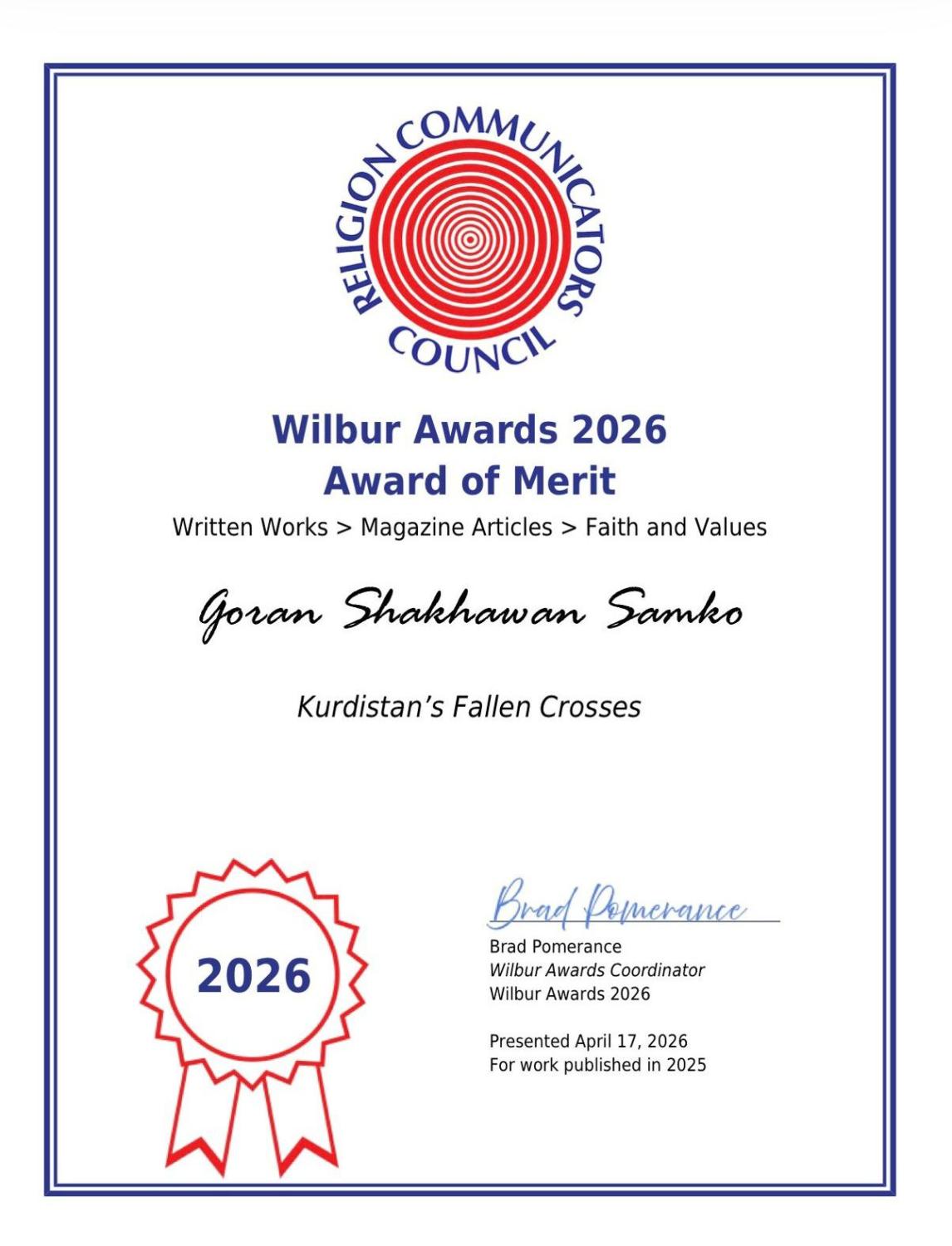 “In selecting our Wilbur Honorees, our judges evaluate content, creativity, execution, and results, but the ultimate criterion is excellence in communication about faith and religion,” Pomerance told Kurdistan Chronicle. “Each entry in the Wilbur Awards is judged by three experienced media professionals.”