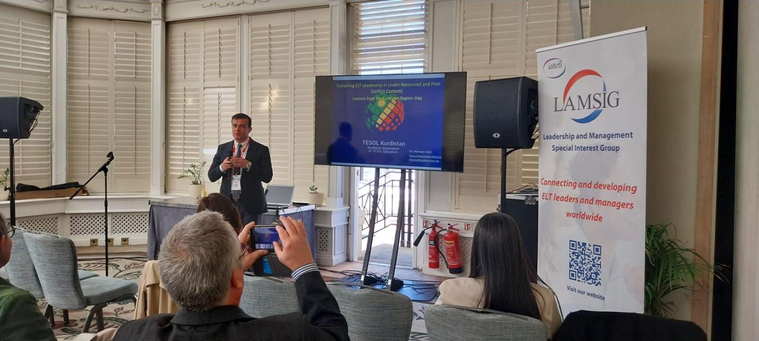 TESOL Kurdistan made a meaningful contribution to the conference through its participation in the IATEFL Leadership and Management Special Interest Group. During this session, Abdi delivered a presentation entitled “Sustaining ELT Leadership in Under-Resourced and Post-Conflict Contexts: Lessons from the Kurdistan Region.”