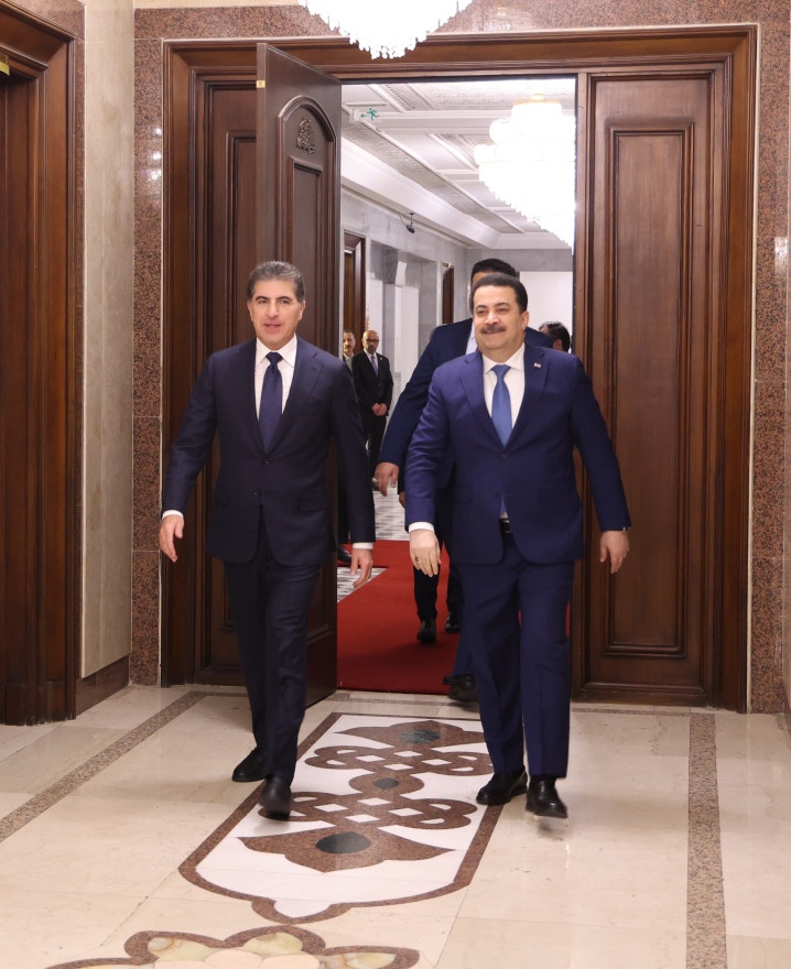 Kurdistan Region President Nechirvan Barzani held a meeting with Iraqi Prime Minister Mohammed Shia’ al-Sudani in Bagh