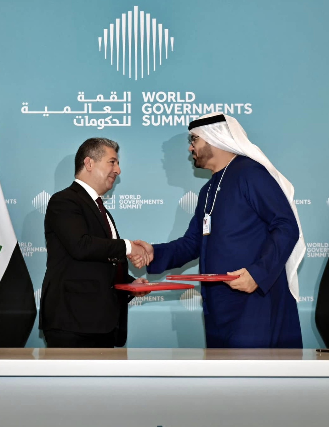 Kurdistan Regional Government (KRG) Prime Minister Masrour Barzani and UAE Minister of Cabinet Affairs Mohammed Al Ger