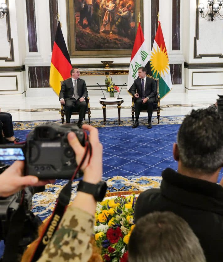 Kurdistan Region President Nechirvan Barzani on Thursday met with a delegation led by Germany’s Minister of Defense Bo
