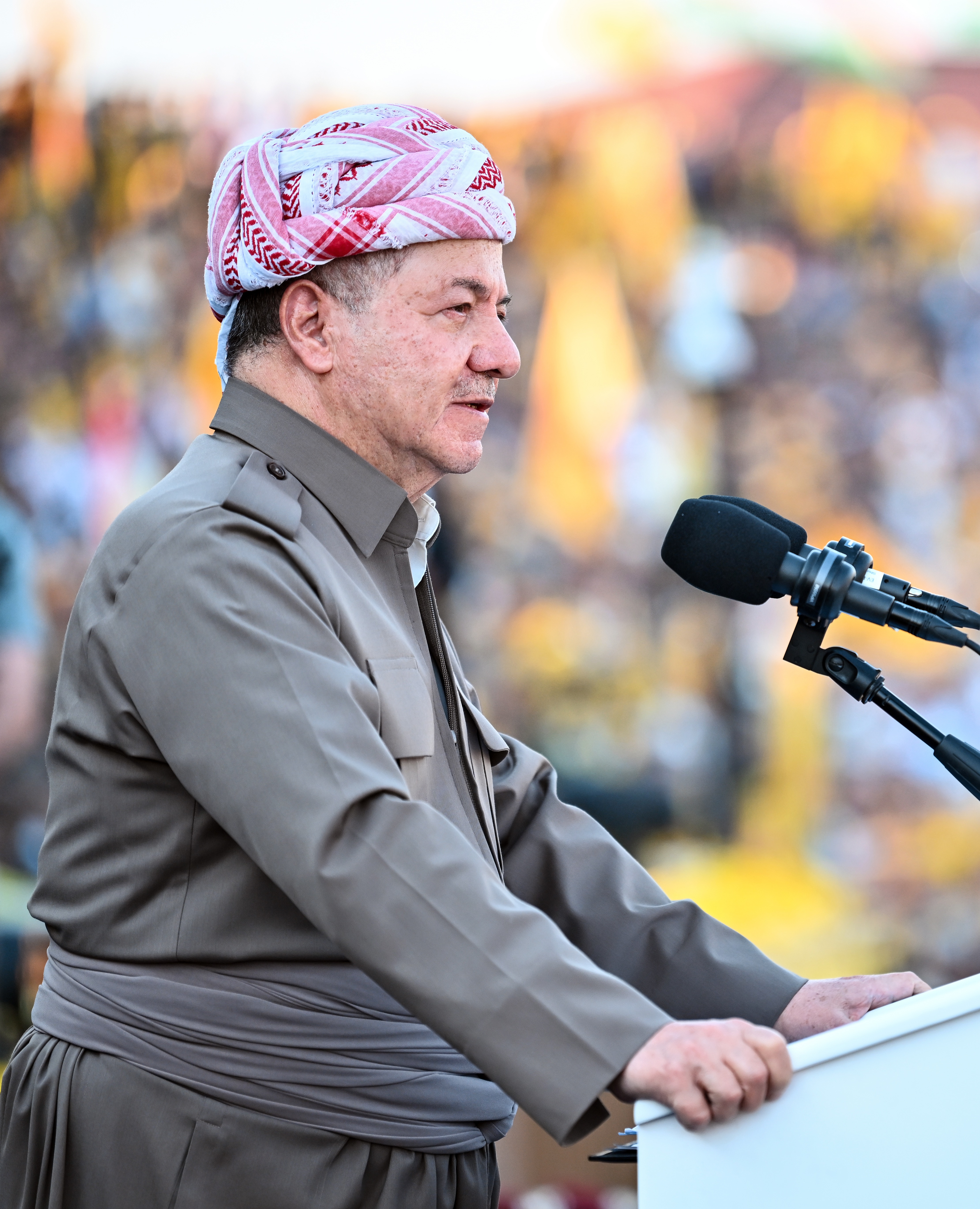 Kurdistan Democratic Party (KDP) President Masoud Barzani during a speech in his party’s election rally on Tuesday und