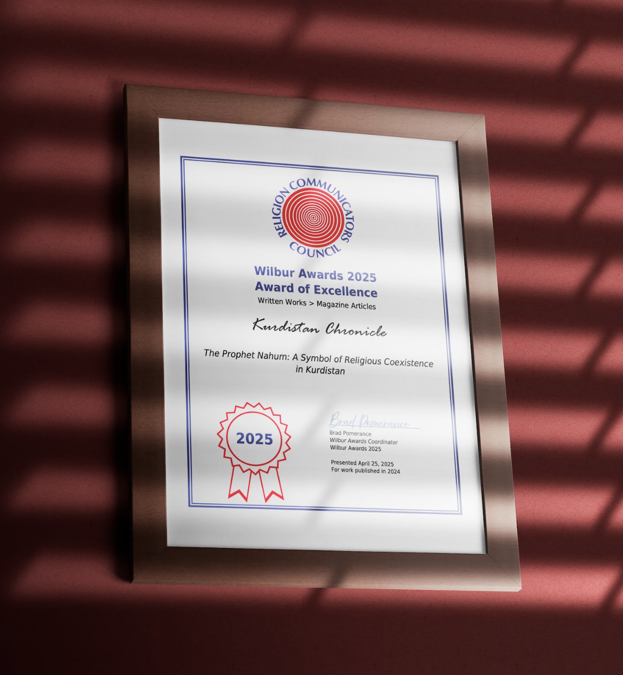 Kurdistan Chronicle has been honored with the prestigious Award of Excellence by the U.S.-based Religion Communicators