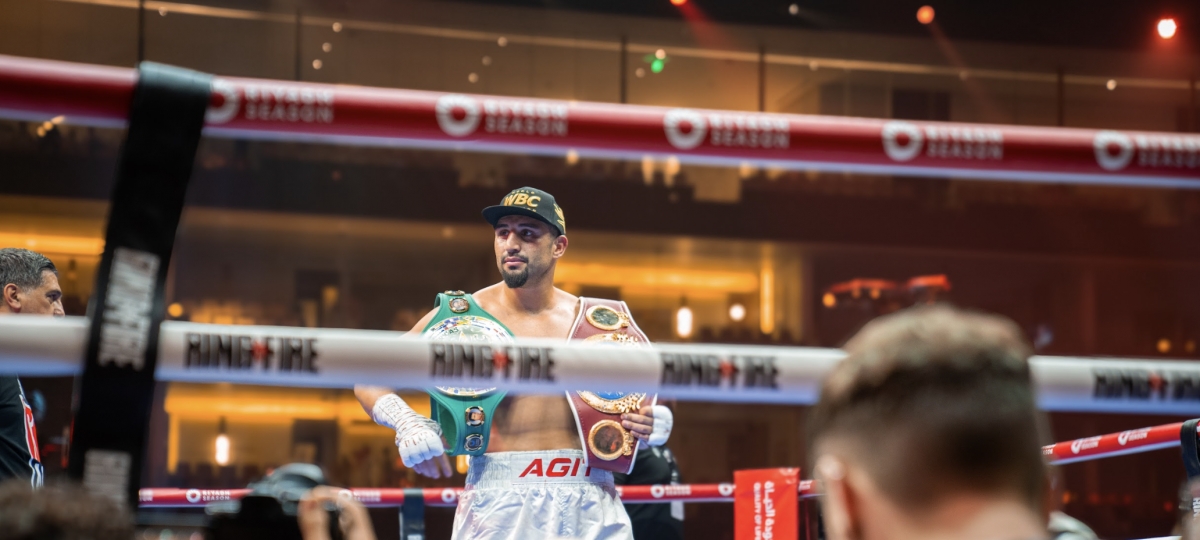 He pushed his opponent to the edge until his back hit the ropes. Then came a barrage of jabs, hooks, and uppercuts, en