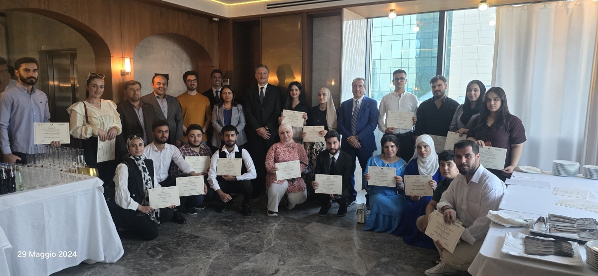 On May 29, Italy’s Consul to Erbil Michele Camerota delivered certificates to Salahaddin University-Erbil (SUE) studen
