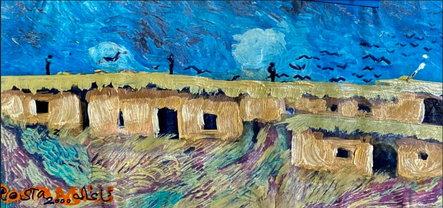 I want to be a cow, I want to be a sheep, whether I like it or not. Sometimes I feel like a donkey because I have to carry my stuff and set it up over and over again. For 35 years, I have been painting non-stop without thinking about what I am doing, why or how I am painting. Now that I’ve established my own style, I feel like I’ve come to the point where I don’t have to be told not to draw in my own way. Whenever students who want to study art are asked how many Kurdish painters they know, most mention my name, Rostam Aghala.