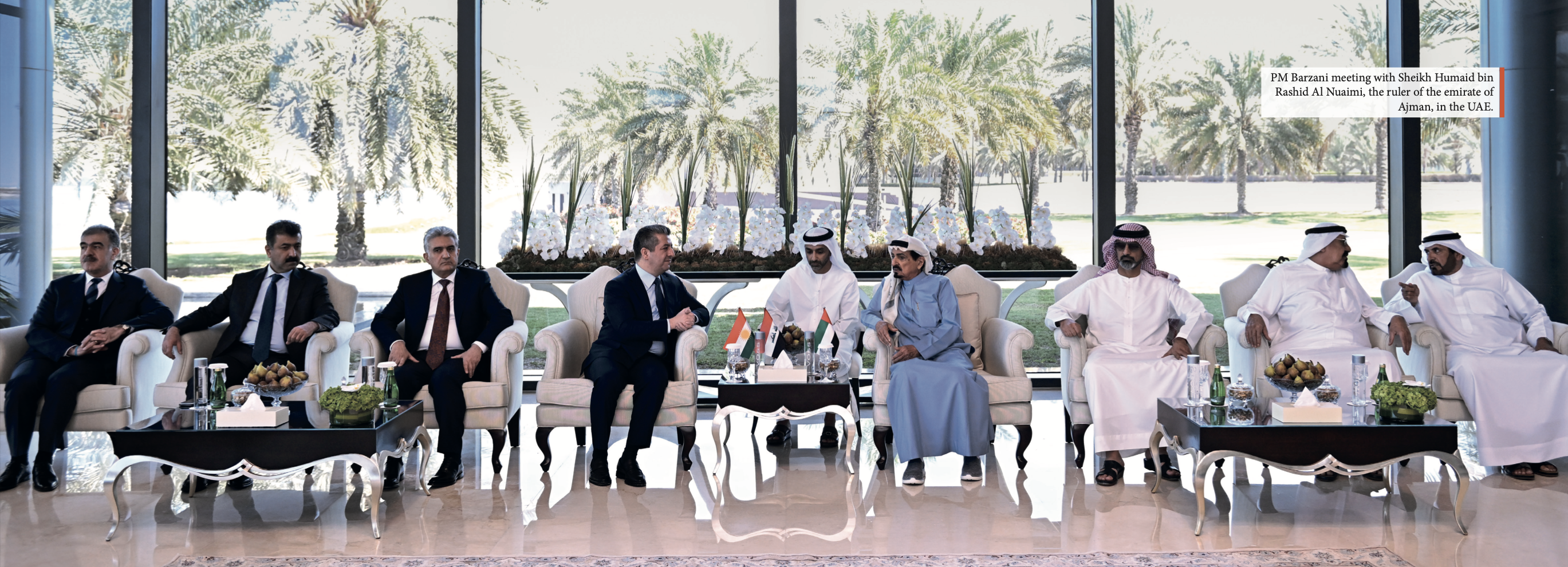 During the visit, PM Barzani and his accompanying delegation also paid visits to the Emirate of Fujairah and the Emirate of Ajman, where he was received by His Highness Sheikh Hamad bin Mohammed Al Sharqi and His Highness Sheikh Humaid bin Rashid Al Nuaimi, his Crown Prince, and other Emirati personalities. These two visits were for the purpose of consolidating relations and discussing ways to strengthen bilateral relations.
