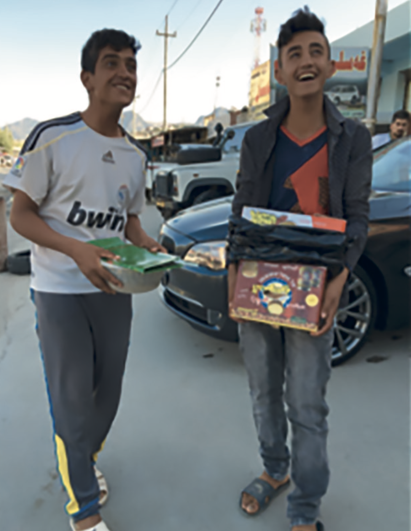 While continuing to chew sunflower seeds, Emad’s shaded cinderblock seat lies next to a makeshift birdhouse. The small homemade enclosure is shaded by a faded blue United Nations tarp that protects the birds from the strength of the afternoon sun. Emad enjoys sitting with his birds, watching all eight of them eat and drink before letting them stretch their wings and fly above the camp. The love Emad has for his birds is unique, setting him apart from everyone else in Camp Rawanduz. Situated in the back of a small neighborhood, Camp Rawanduz is tucked nicely next to an abandoned stadium. Like the rest of the Yezidis in Camp Rawanduz, Emad also enjoys playing football. Once the sun falls low to the horizon, cooling the dusty summer air, you can find Emad running in the overgrown and abandoned stadium next to the camp with other Yezidis, all of whom are engaged in a competitive game of football. As the men run after each other and the young children play together on the sidelines, Emad’s birds soar through the evening air, flapping their wings high above the field below.
