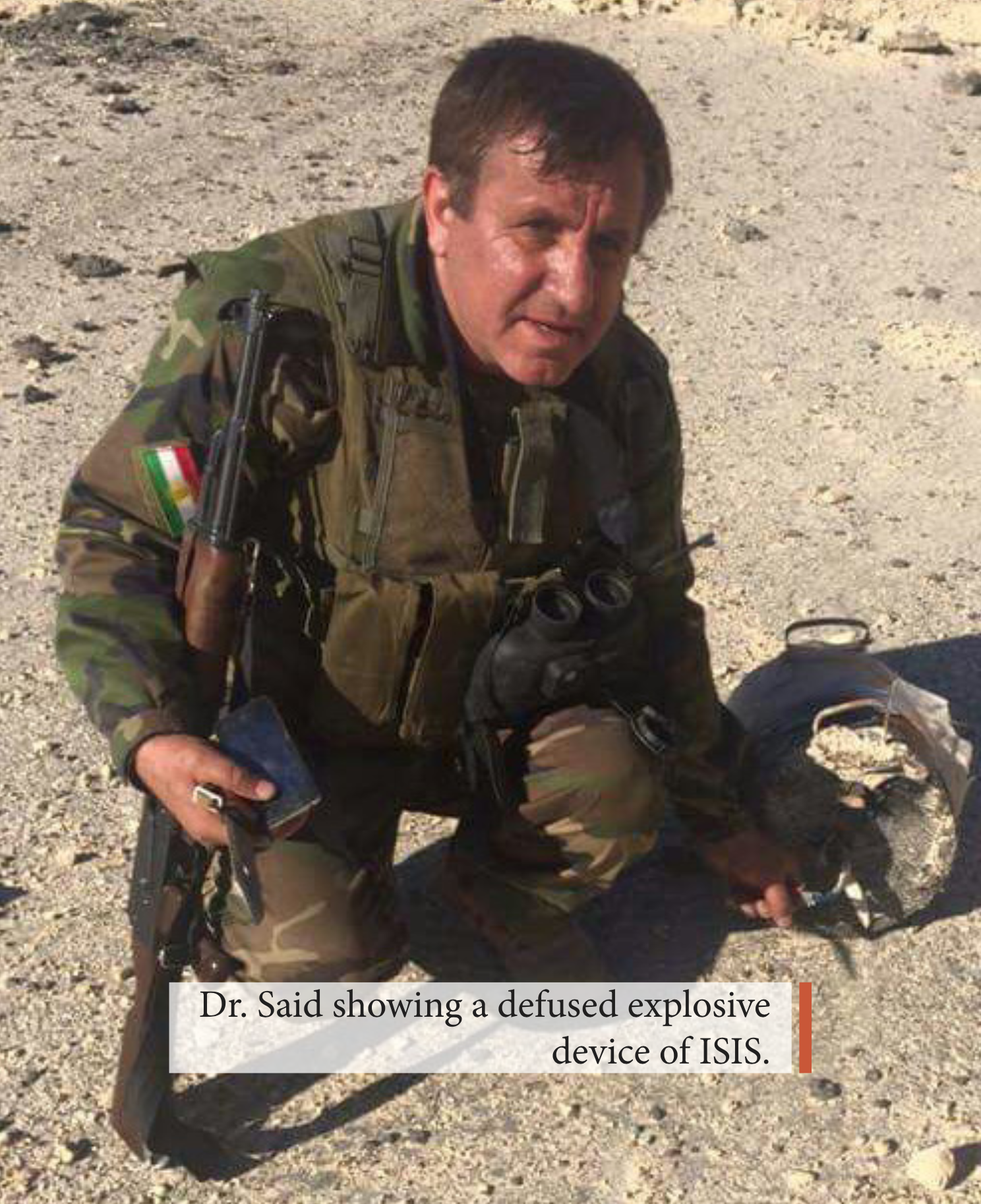 Upon his arrival in Erbil, Dr. Said wasted no time in contacting peshmerga commanders to offer his expertise in leading a specialized explosives-clearance team. The areas that had been liberated from ISIS by the peshmerga were heavily booby-trapped, with no regard for the laws of war or humanistic principles. Dr. Said's team was among the first to enter these territories to detect and safely remove these explosives. Once he gave the green light, the peshmerga were able to move forward and secure the region against future attacks from ISIS.