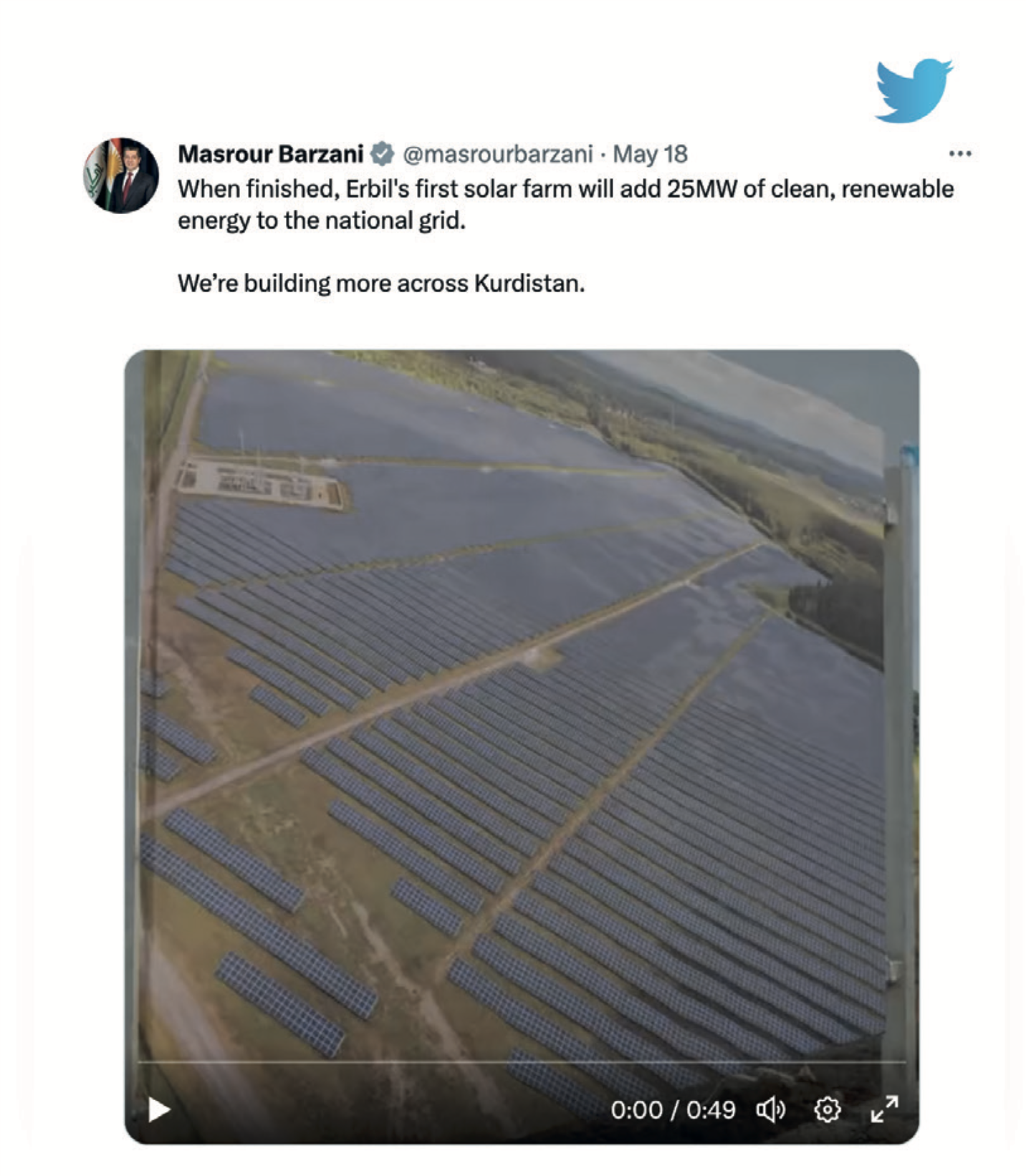 On May 18, the Kurdistan Regional Government's Prime Minister Masrour Barzani marked a significant milestone in the region's energy sector by laying the foundation stone for the first solar power plant in Erbil province. With an impressive capacity of generating 25 MW of electricity per hour, the project represents a crucial step towards developing eco-friendly energy sources in the Kurdistan Region. During his speech, Prime Minister Barzani highlighted the importance of sustainable energy and the Kurdistan Region's responsibilities in managing their energy payments and reducing overconsumption.
