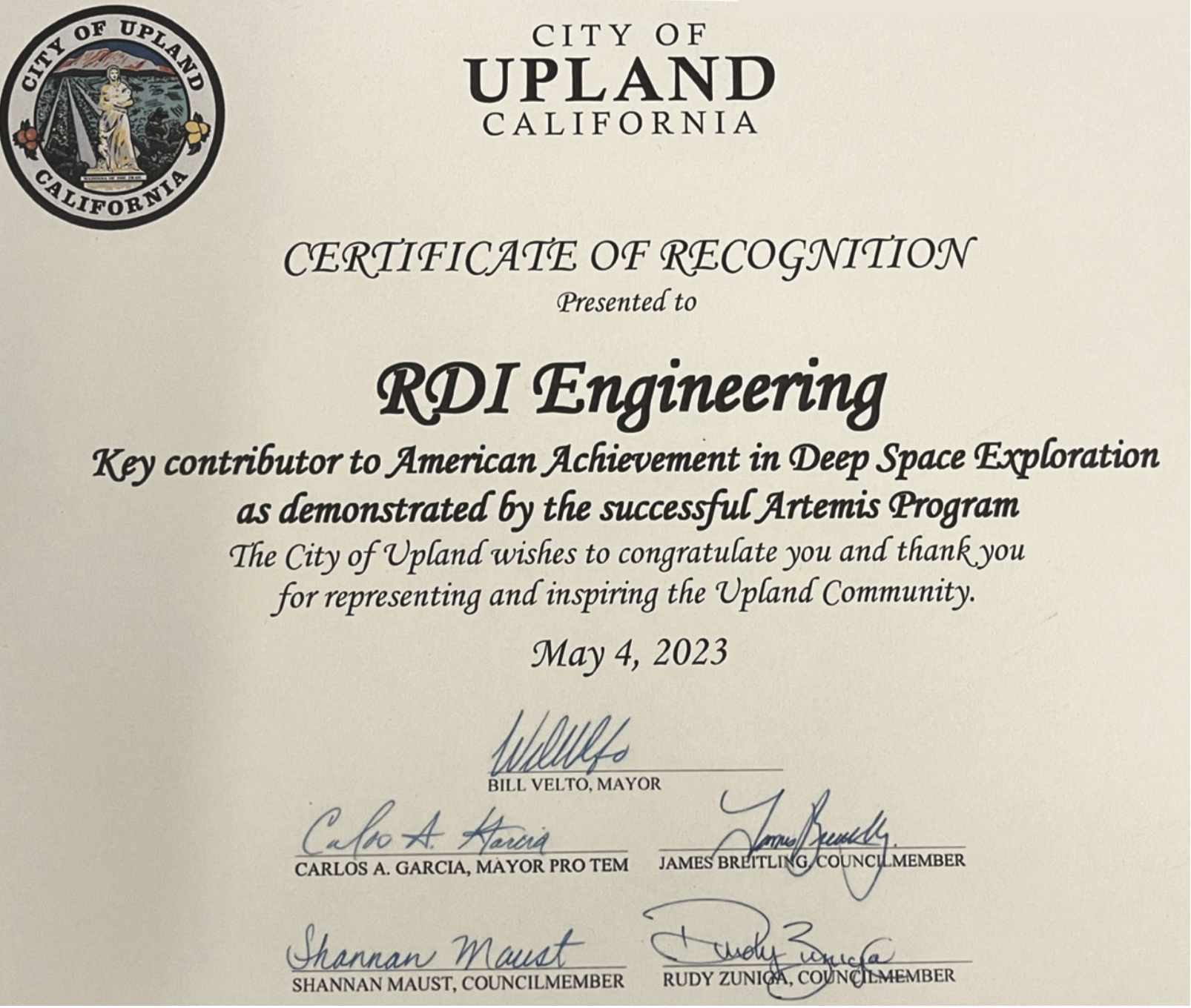 In 2015 his company RDI Engineering received a contract from Lockheed Martin to work on NASA’s Artemis program components for the Propulsion and Reaction Control System. The successful mission of the Artemis I, was accomplished between November and December of 2022, operating with RDI Engineering designs on board of the Orion Capsule and the European Space Agency built Service Module.