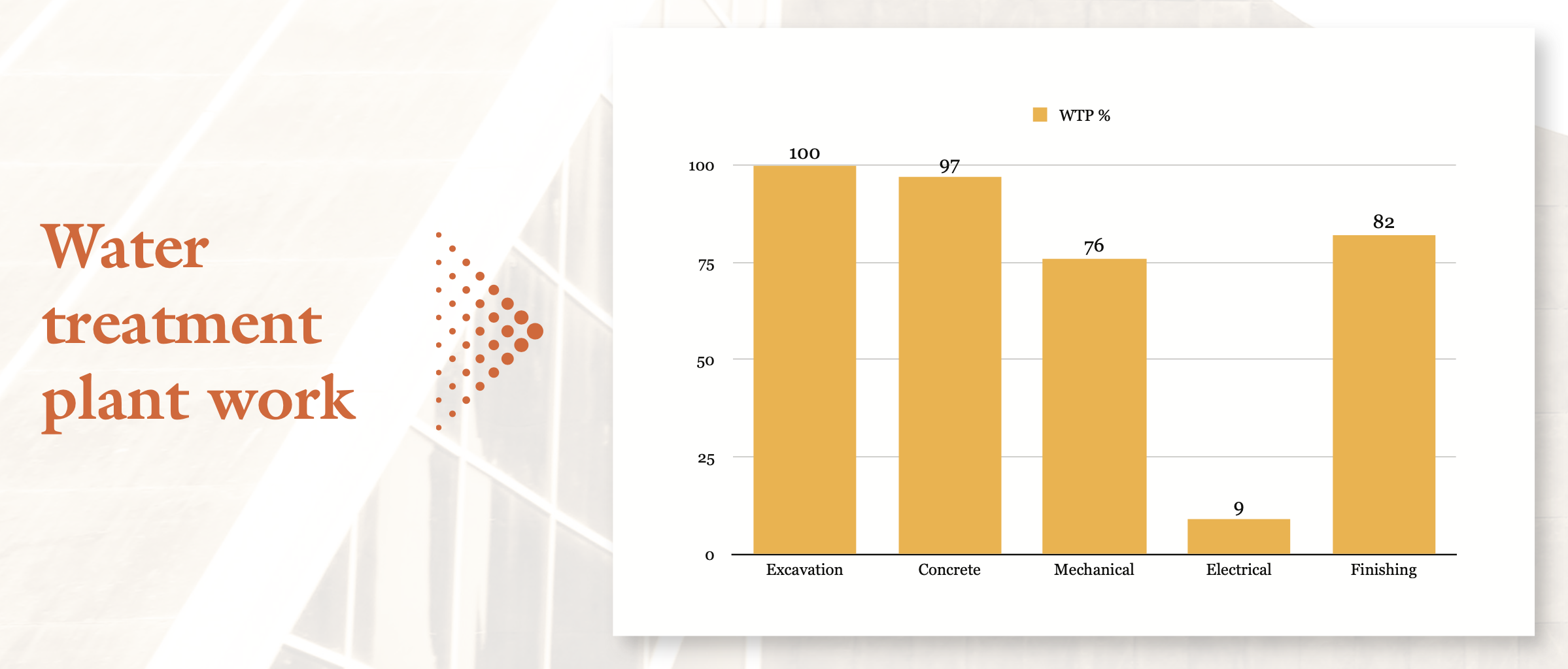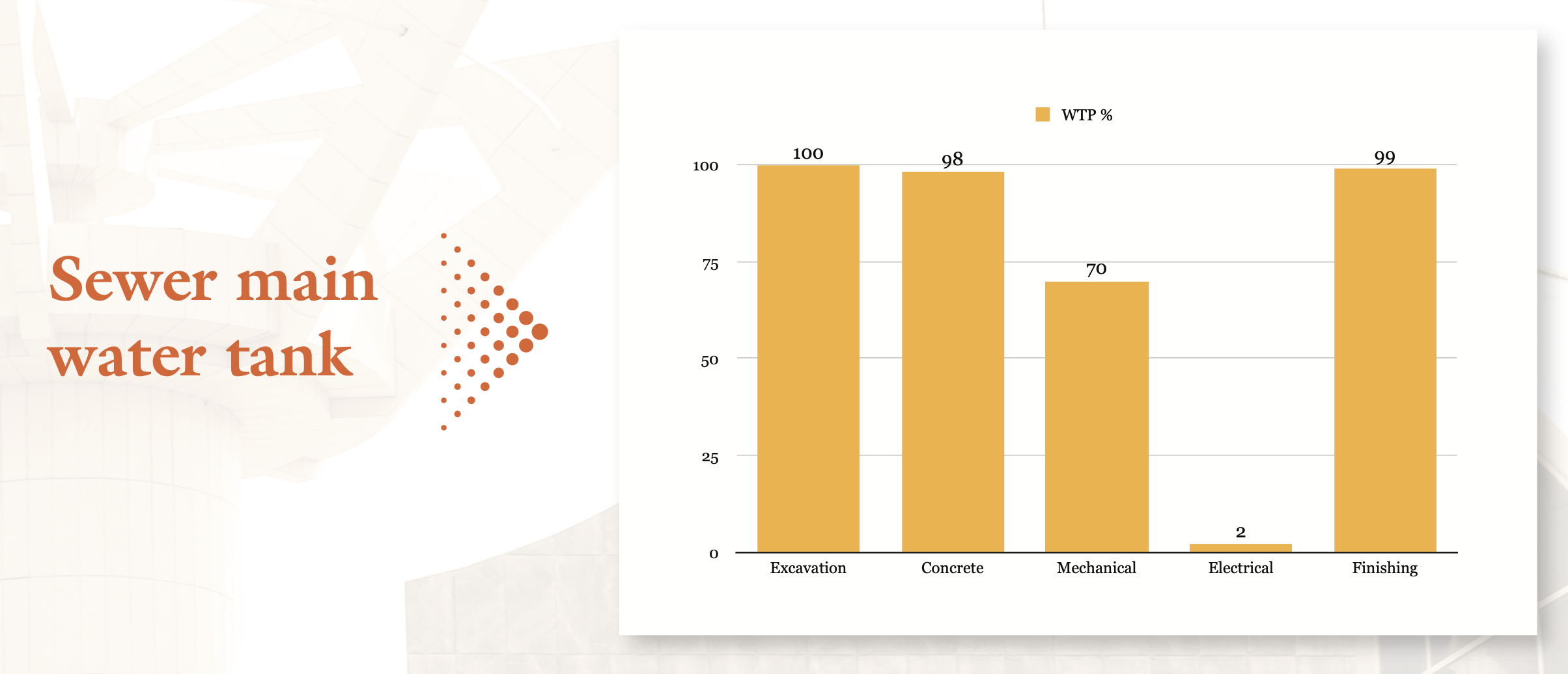 The planned capacity of the water treatment plant is 1,200 m3/h. The raw water will be treated and purified before being pumped into a clean water storage tank with a capacity of 8000 m3.