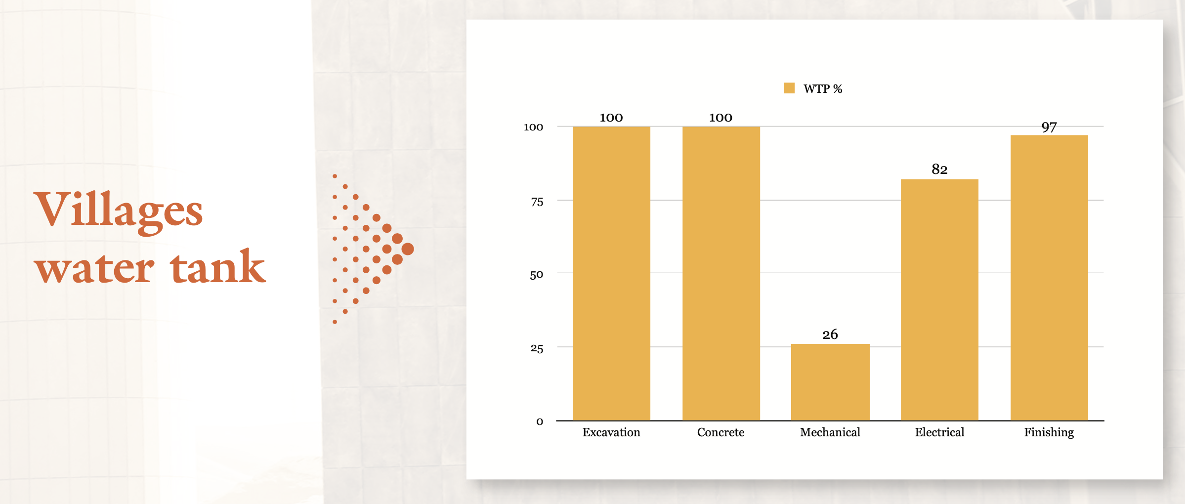 Clean water will be distributed from the storage tanks to the villagers through HDPE pipes that have diameters of 75 mm, 90 mm, 110 mm, and 200 mm.