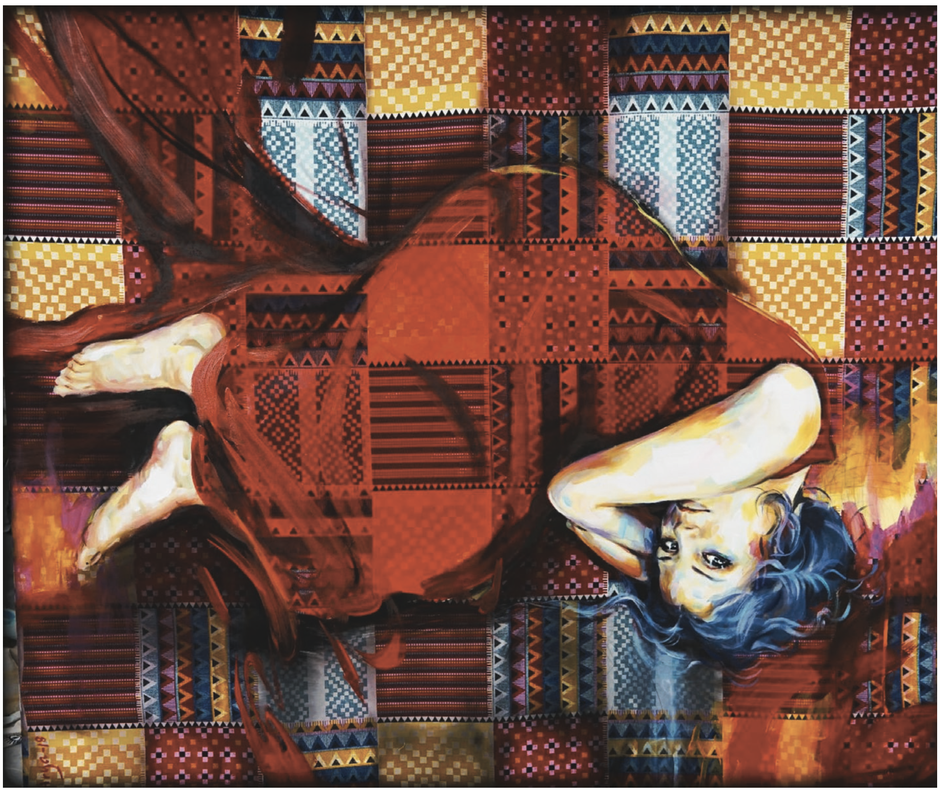 KC: Where did the idea of using Kurdish fabric in your paintings come from? What is the impression of the German audience when they see these paintings that blend high artistic skill with the unique Kurdish colors?