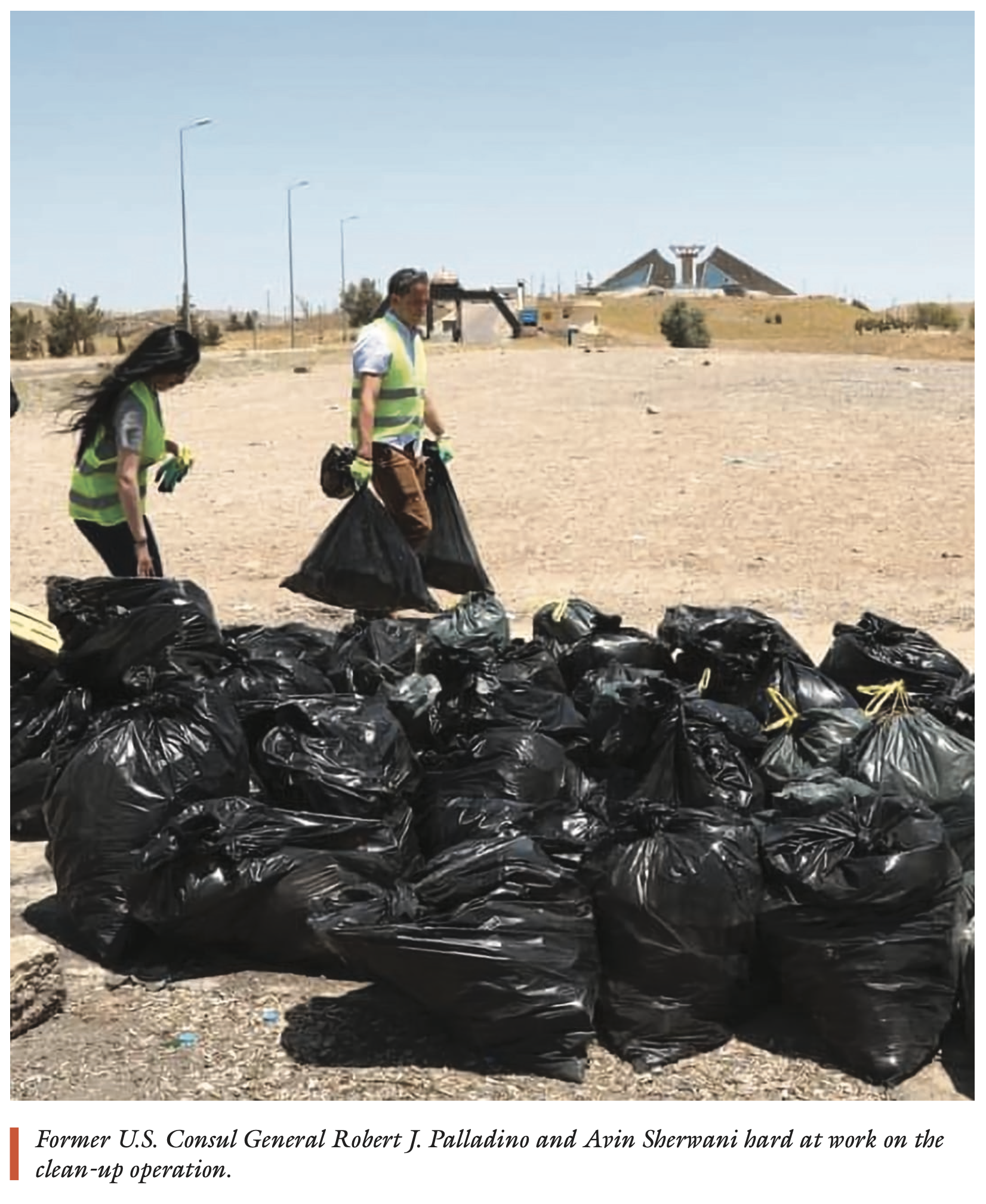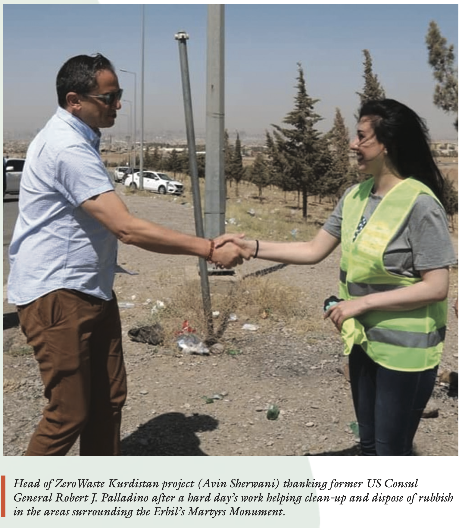 To this end, Evin and her co-activists have conducted a number of seminars at academic institutions in the KRI, namely UKH and Tishk International University in Erbil. One of the highlights of her activism was a joint project with the U.S. Consulate and American Corner in Erbil last year. U.S. Consul General Robert J. Palladino and many other U.S. diplomats stationed in Erbil participated in a cleanup effort together with volunteers from ZeroWaste Kurdistan. The project received nationwide recognition. “This support gave a massive boost to our fledgling organization, raising its profile and supporting the noble cause behind it,” Evin emphasized.