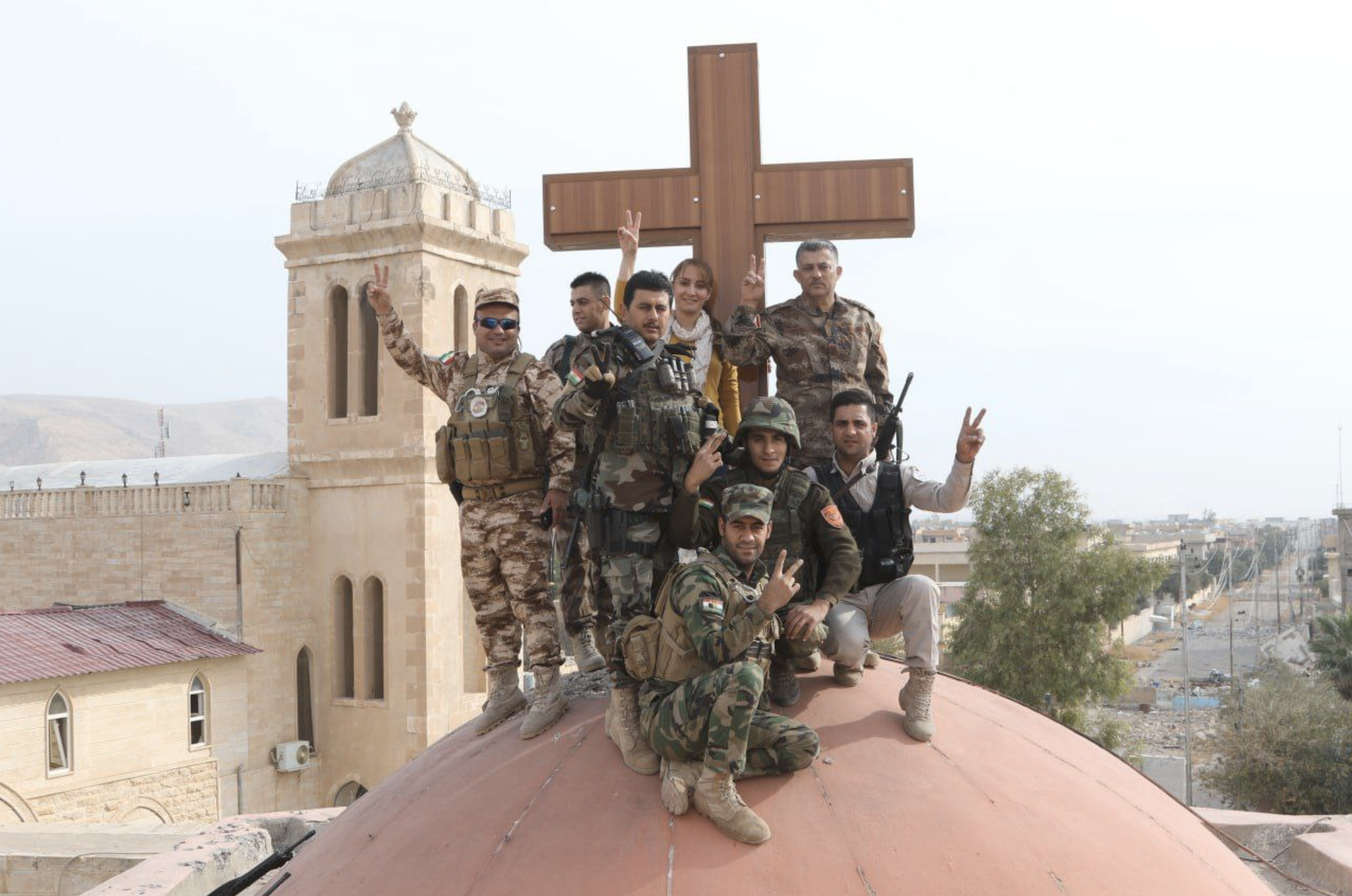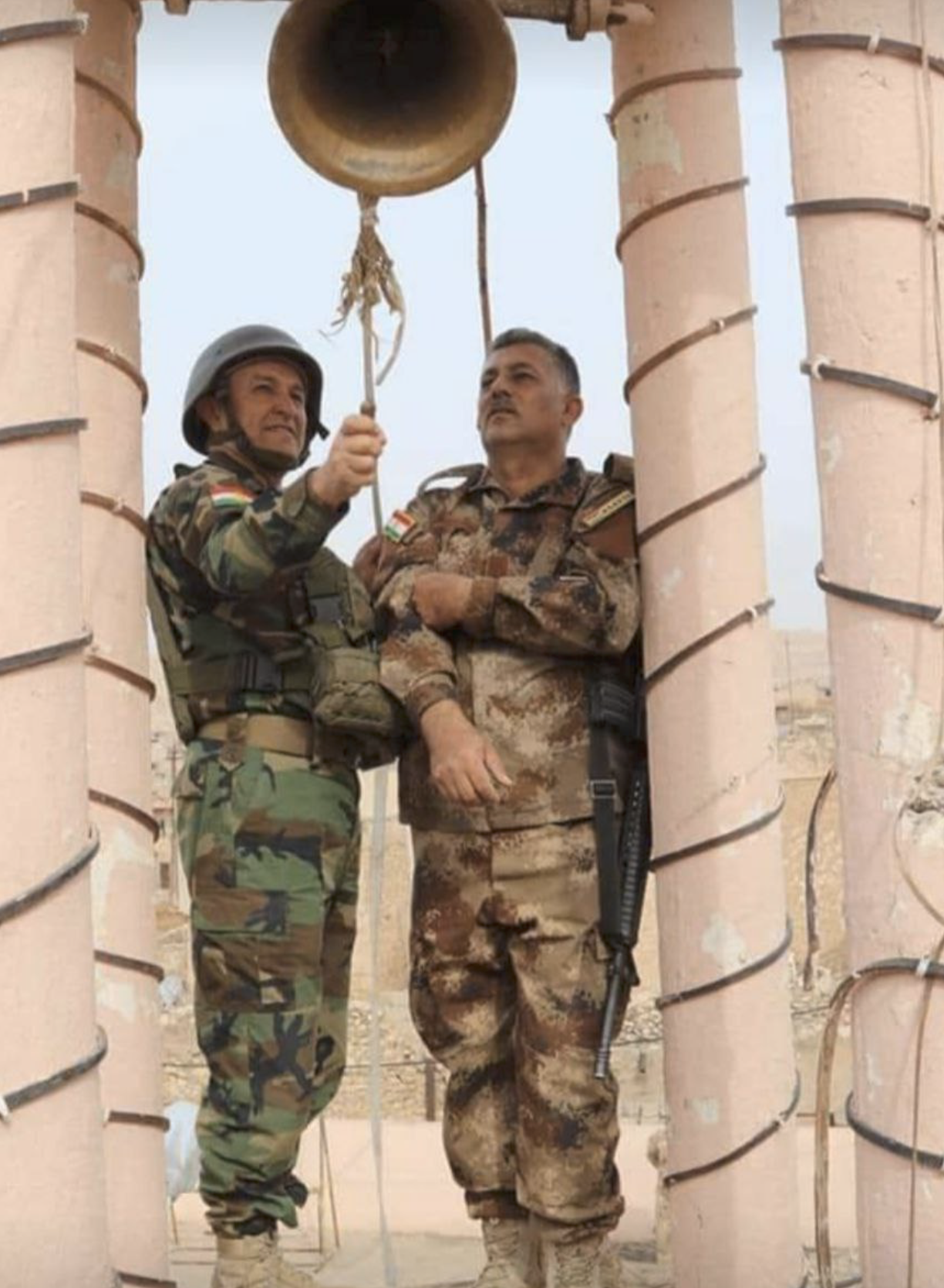 Zerevani forces, led by Lieutenant Bahjat Selki, undertook the operation to restore the cross. They were the first to enter Bashiqa, Nineveh, in the Kurdistan Region of Iraq (KRI). Despite numerous bombs planted inside the church, their mission was clear and promising: to restore the church and bring peace and coexistence back to the region. With unwavering determination, they placed the cross on the roof of the church and rang the bell, a powerful symbol of unity and resilience.
