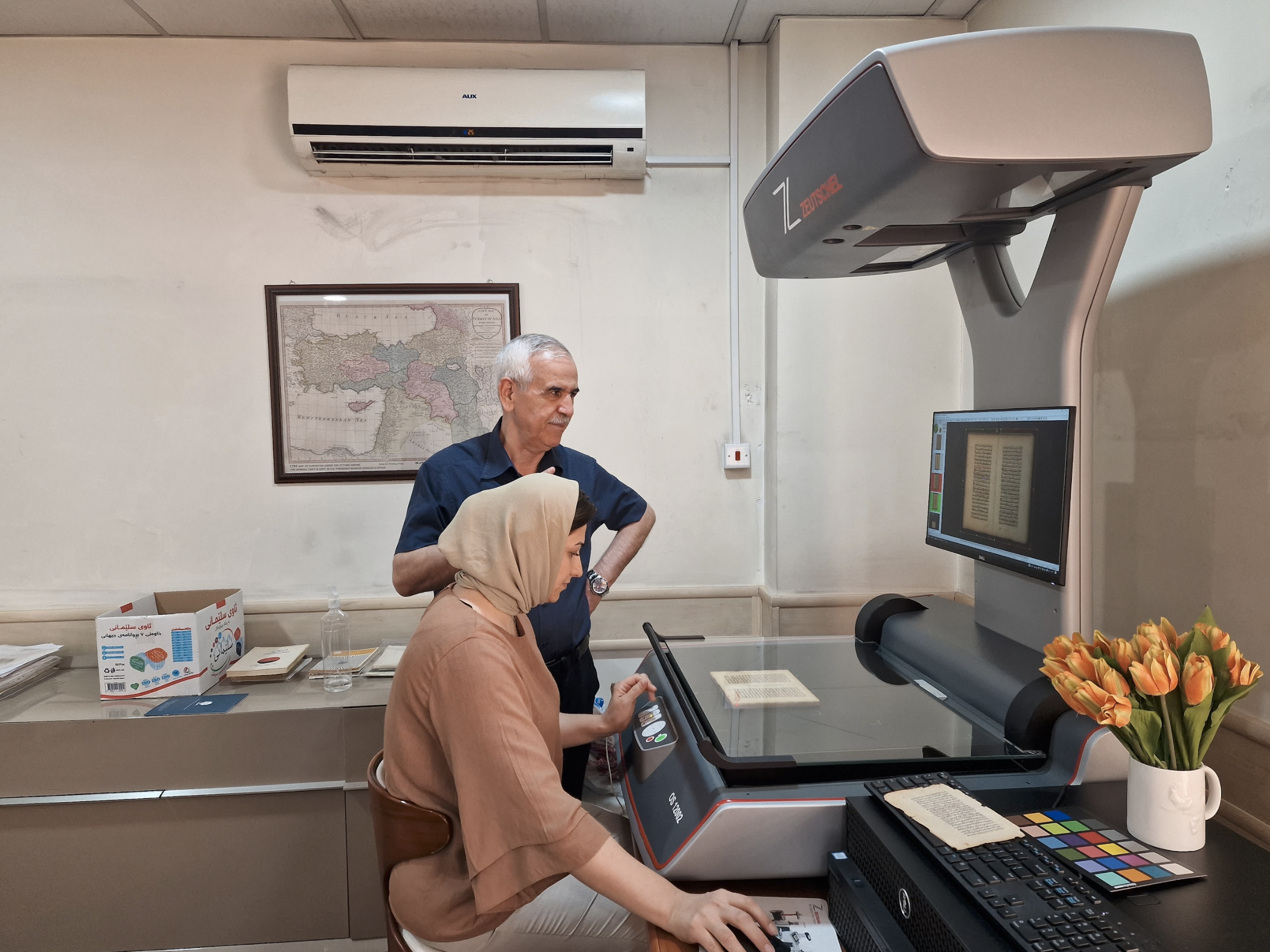 Next, the manuscripts are transferred to the scanning department, where they are scanned for online accessibility. This technique has been developed by the center to facilitate convenient access for researchers and academics, allowing them to easily retrieve and utilize these valuable manuscripts for their scholarly work and papers.