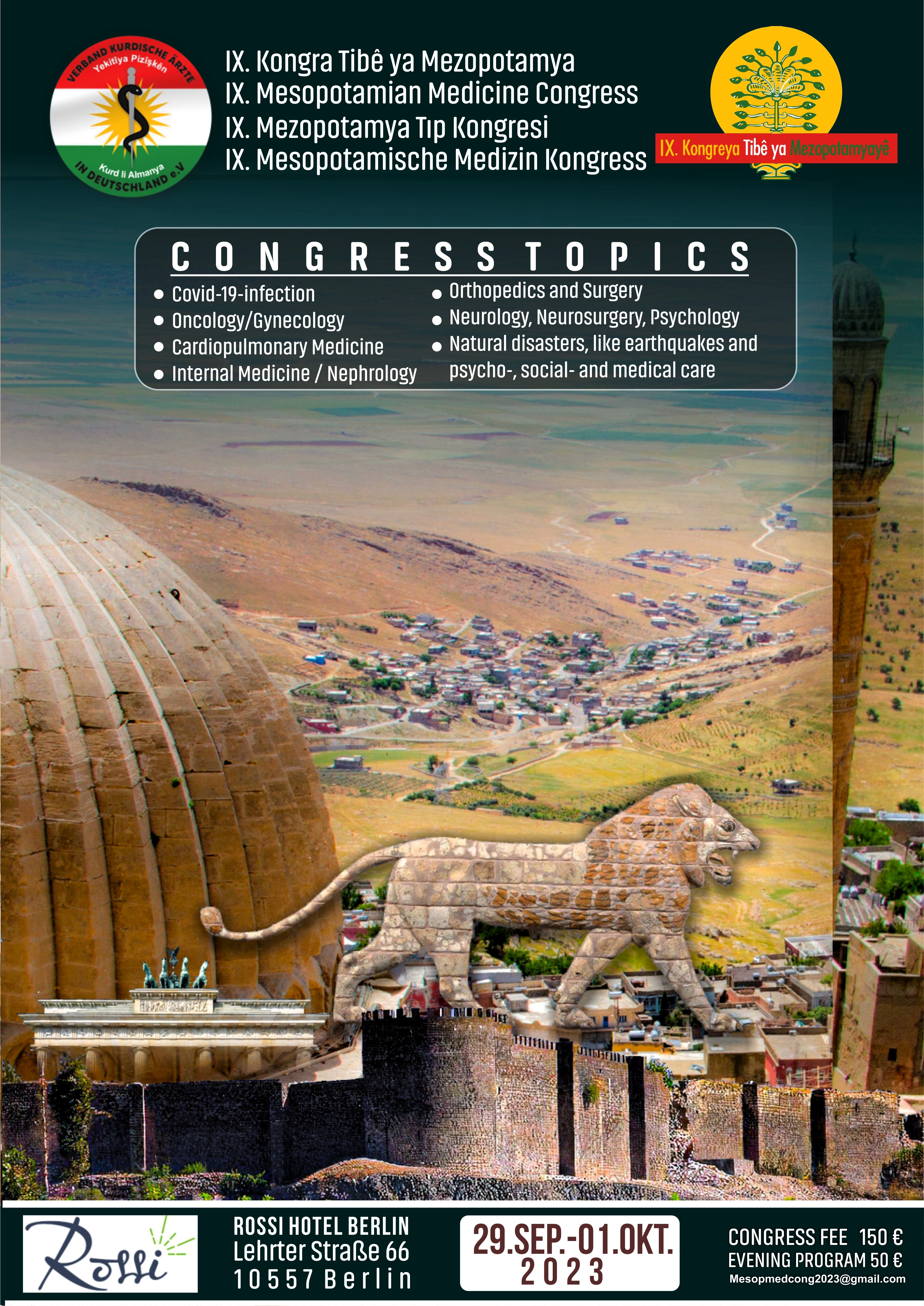 After a break of four years because of the Covid-19 pandemic, the ninth congress took place in Berlin in 2023 with 150 participants. The decision to hold the conference abroad was due to the general political situation in the KRI, and Berlin was deemed particularly suitable because about 2 million Kurds live in Germany and about 1,000 doctors of Kurdish origin are active there. As expected, many colleagues from Kurdistan could not easily travel to Berlin because of visa regulations or financial constraints. However, it was important for us to hold the congress, even if it was only symbolic, to ensure continuity in our mission.