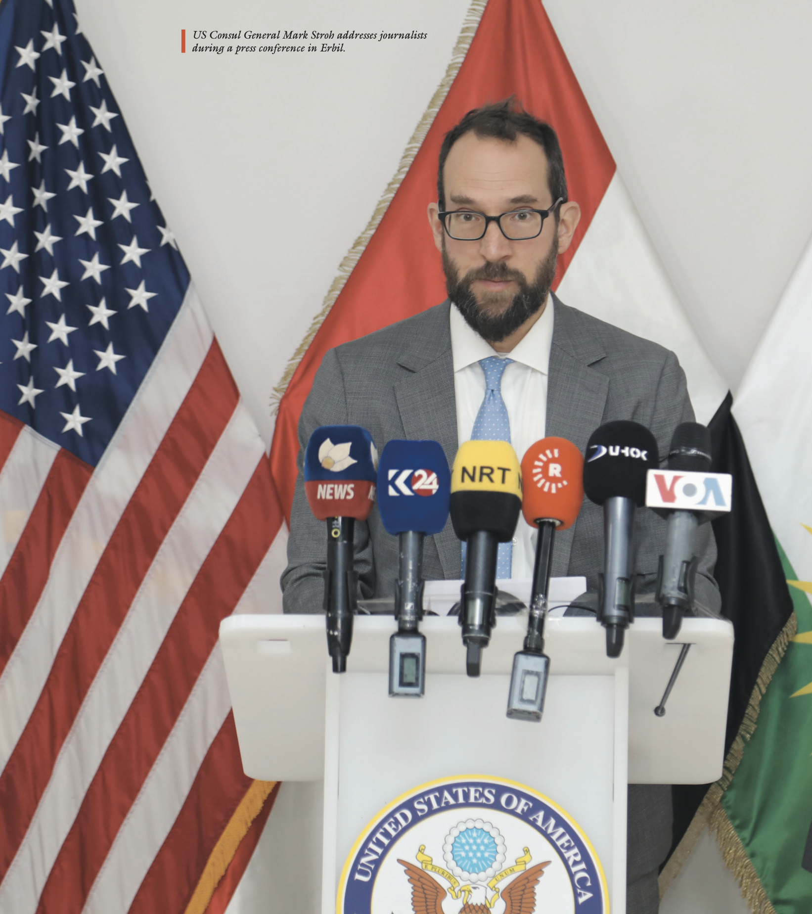 In a joint press conference on Jan. 28 with the mayor of Sheikhan District Sardar Sheikh Yahya, Stroh said that the United States strongly welcomed the policy of the Kurdistan Regional Government (KRG) of hosting over one million IDPs and refugees and for not forcing them to return.