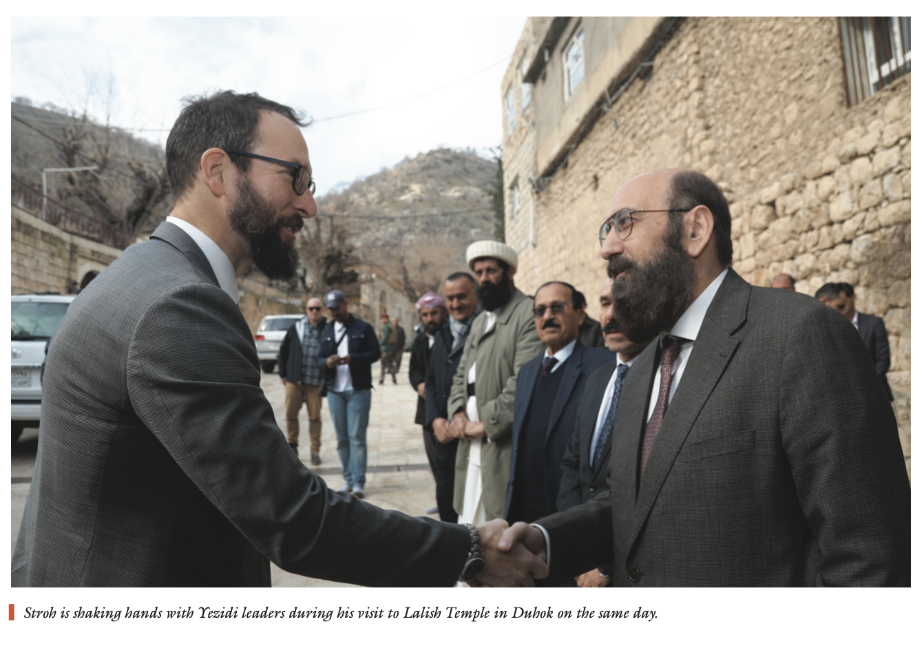 U.S. Consul General (USCG) Mark Stroh on Jan. 28 visited the Sheikhan camp for internally displaced persons (IDPs) in the Nineveh Governate and met Yezidi leaders at the Lalish Temple, which has been being restored with over $2 million in funding from the United States since 2019.