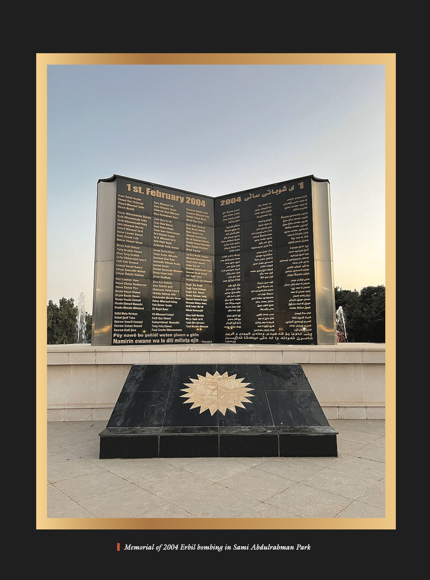 Today, Sami Abdulrahman Park blossoms in the heart of Erbil and is a place for quiet walks, joyful wedding celebrations, and children’s laughter. The monument to the victims of the February 1, 2004 terrorist attack stands tall and bears their names with pride. Every year, the Prime Minister of the Kurdistan Region, officials, and diplomats join the families of the victims in a ceremony of remembrance.
