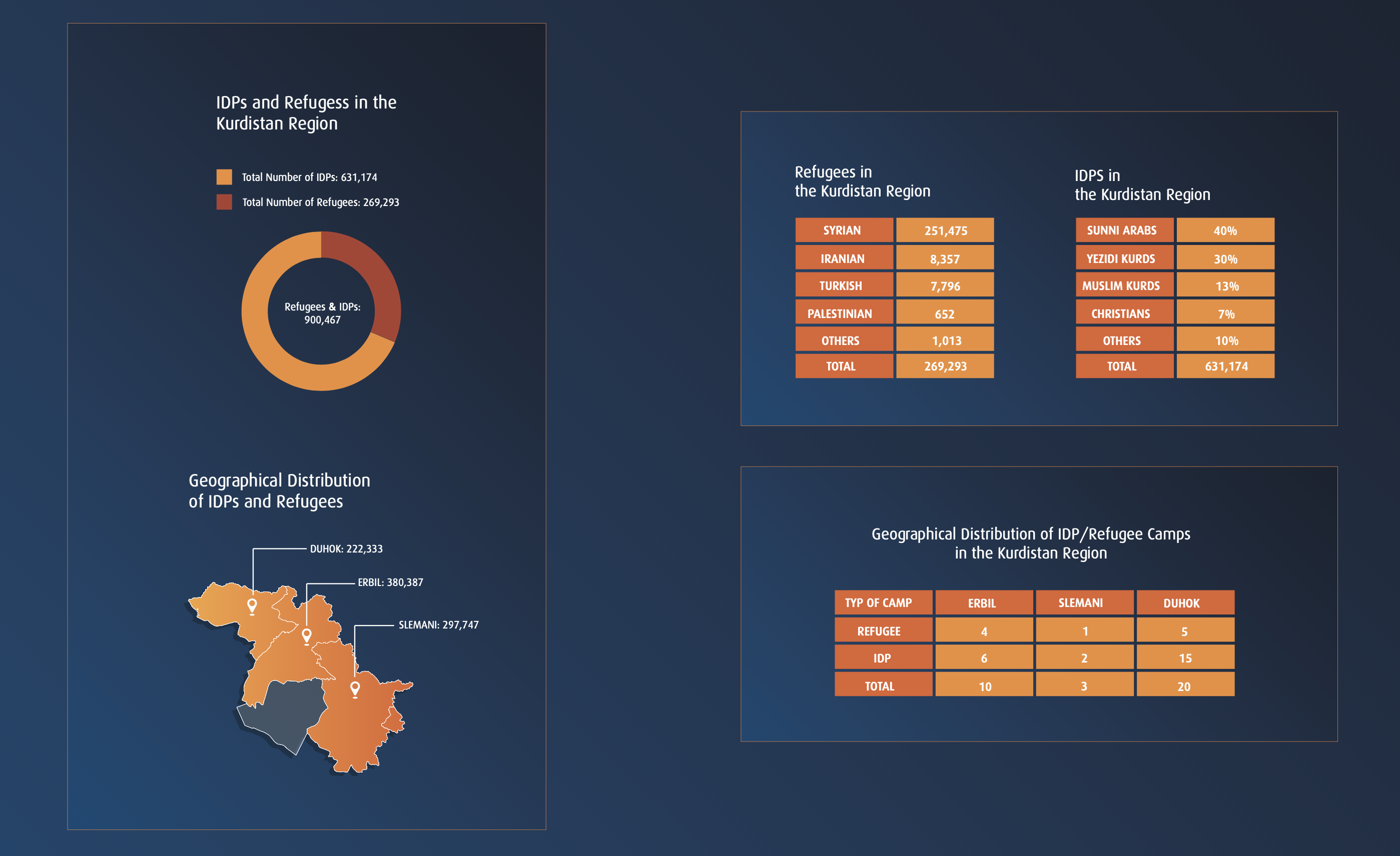 Erbil shoulders the heaviest burden, housing 41% of the displaced population, followed by Duhok (40%) and Sulaymaniyah (19%).