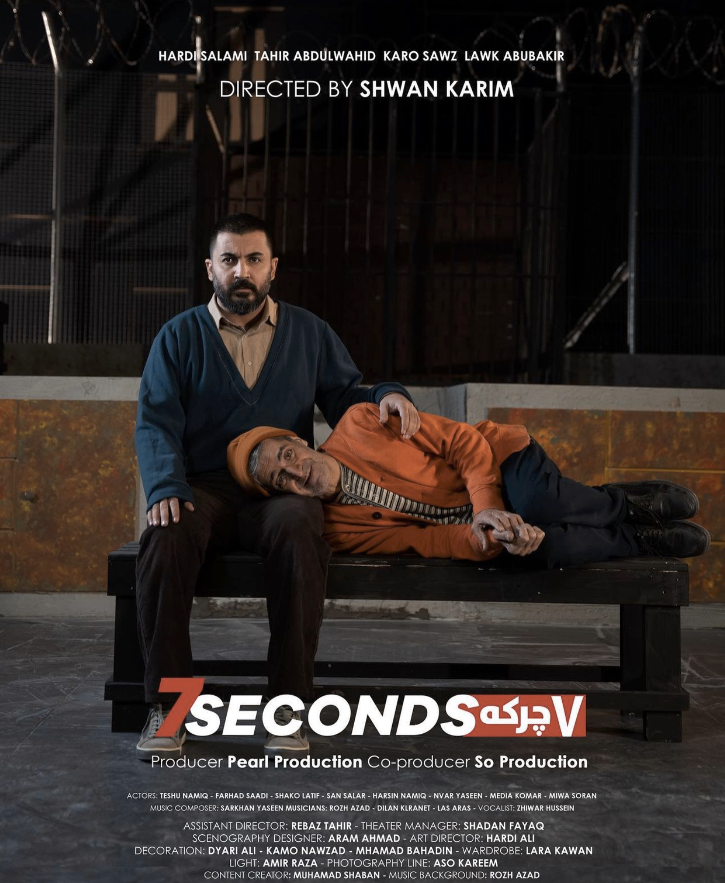Seven Seconds is his most recent production. Currently showing in Sulaymaniyah, it will come to Erbil soon. Co-written by Martin McDonagh and Karim, it stars the Kurdish singer Hardi Salami and features other experienced actors, including Tahir Abdulwahd, Lawk Ebubekir, and Karo Sawz. The plot centers around a writer who is brutally dragged into an interrogation room in an unnamed totalitarian dictatorship and questioned by two detectives about the stories he has written. The play’s action is driven by subplots that showcase the power of Karim and McDonagh’s writing.