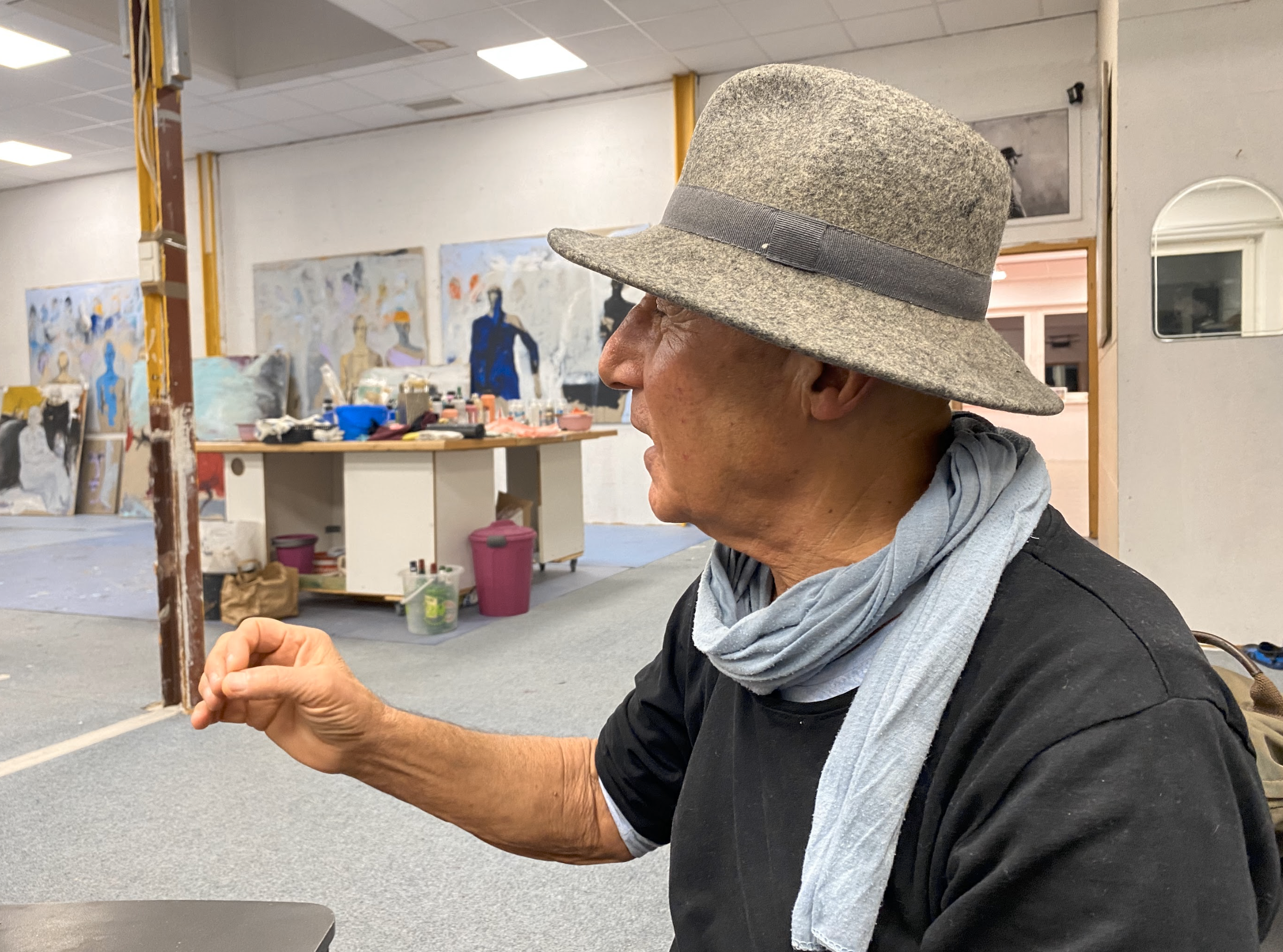 We met Hajo in his studio in Münster at the end of 2023 and had a long interview with him about his fruitful artistic experience as well as his life story, fraught with instability and characterized by frequent relocations. During the interview, he made it clear to us that painting was his greatest passion. He first studied archeology and then devoted himself to painting in 1989, making a lasting impact on the world of contemporary art. His paintings are sold for large sums of money and still decorate many art galleries in cities worldwide.