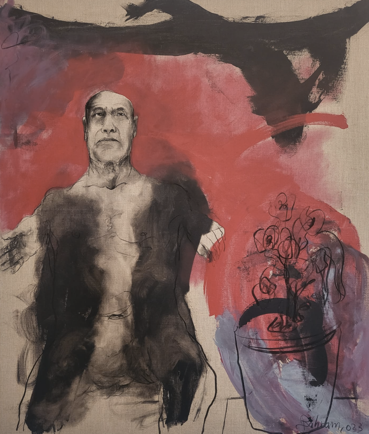 BH: I will answer you without philosophizing the topic. The face I see most is my own. I see myself every day in the mirror. I can draw myself so that others can easily recognize me. Plus, my baldness matches the canvas (laughing). If you draw a head with hair, it will not be beautiful.