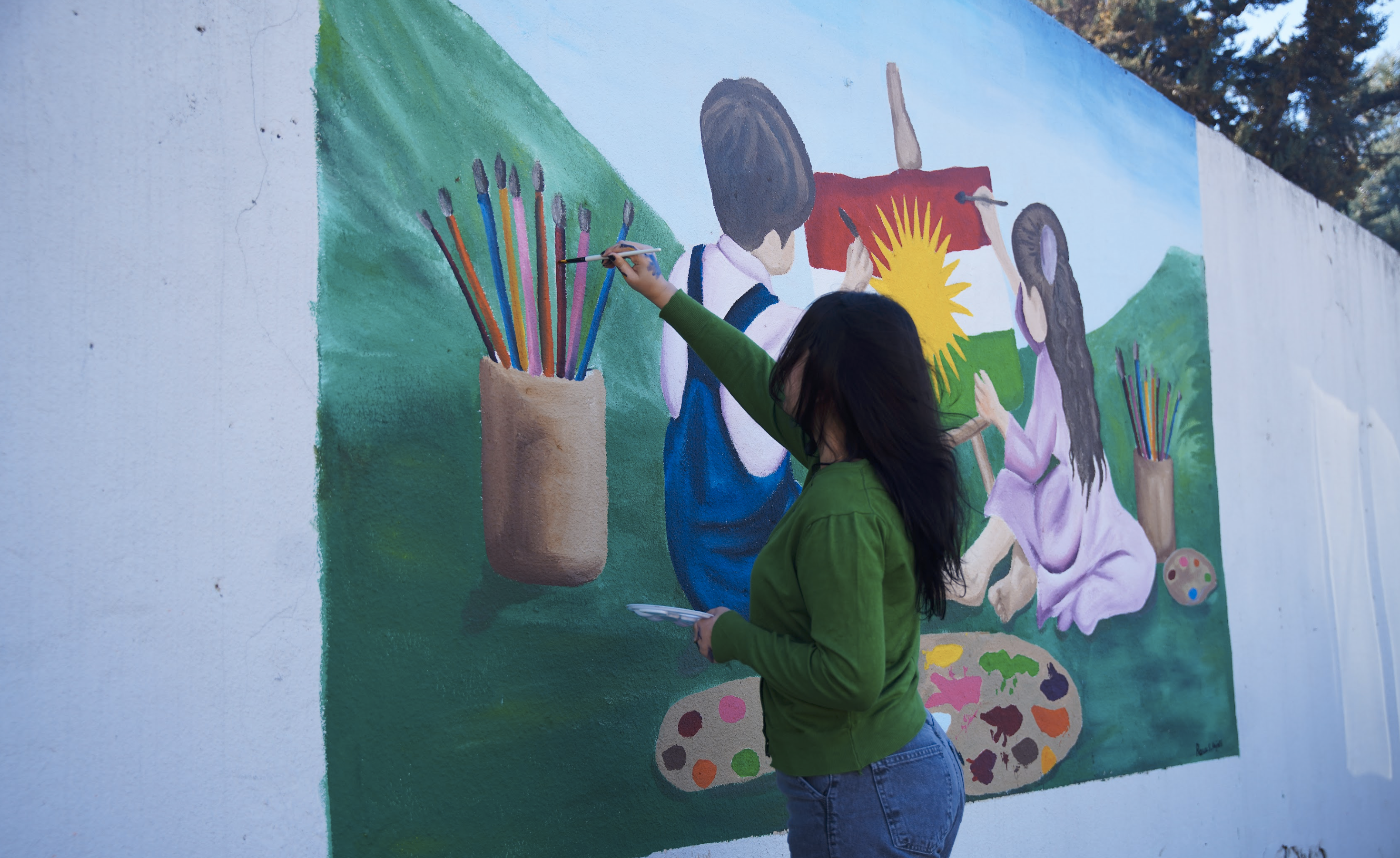 Currently working with Avashin, a local human development organization, Kamaran has painted at least one mural in every school and health center in Soran and the neighboring district of Rawanduz. Her desire to leave her artistic mark extends beyond her current projects, and she dreams of painting more and more, spreading her message through art.