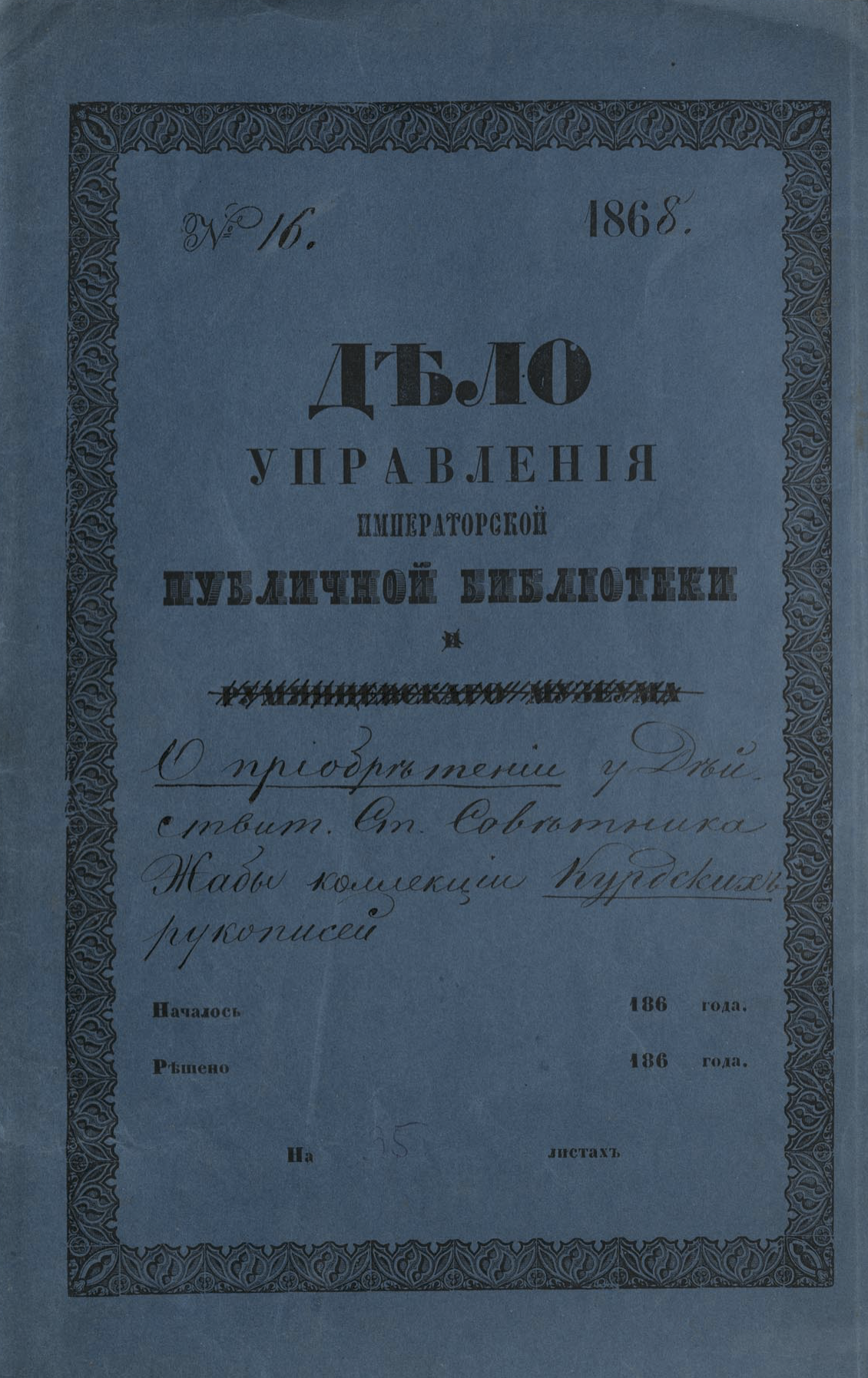August Zhaba was one such diplomat who made a great contribution to development of Russian-Kurdish relations and Kurdology itself. One of the first graduates of the Educational Department of Oriental Languages in the Asian Department of the Russian Ministry of Foreign Affairs, Zhaba not only had a noteworthy diplomatic career, but also contributed to Kurdology, primarily through publishing the first Kurdish-French dictionary in 1879. His collection of manuscripts in the Kurdish language, including his translation of the famous Sharafnama, is incredibly rich and valuable.
