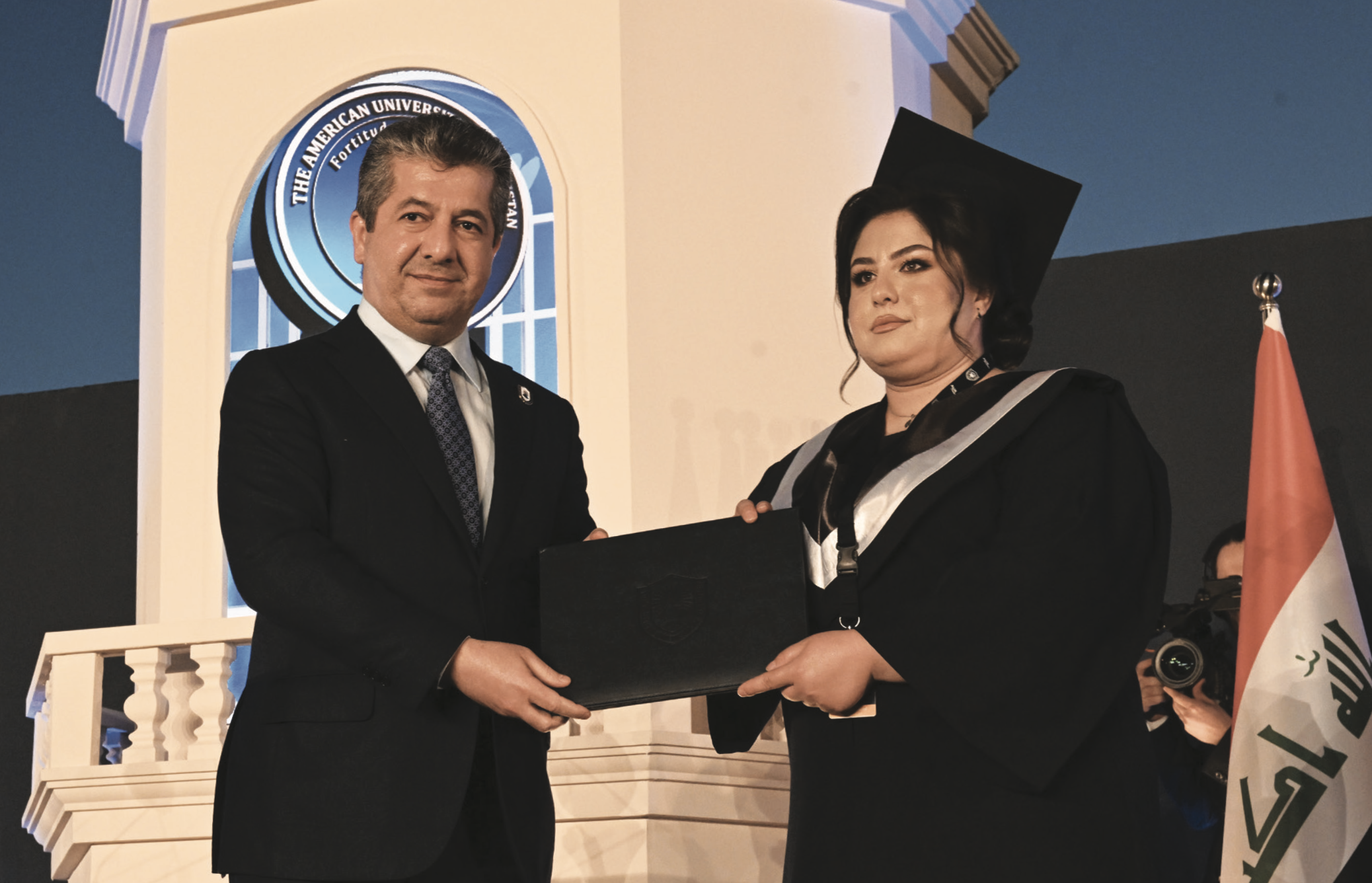 Shireen Khero, a 30-year-old Yezidi survivor of the genocide perpetrated by ISIS, defied all odds to find a way forward. In June 2024, she graduated with a business management degree from the American University of Kurdistan (AUK) and was awarded the Honor of Resilience by Kurdistan Regional Government Prime Minister Masrour Barzani.