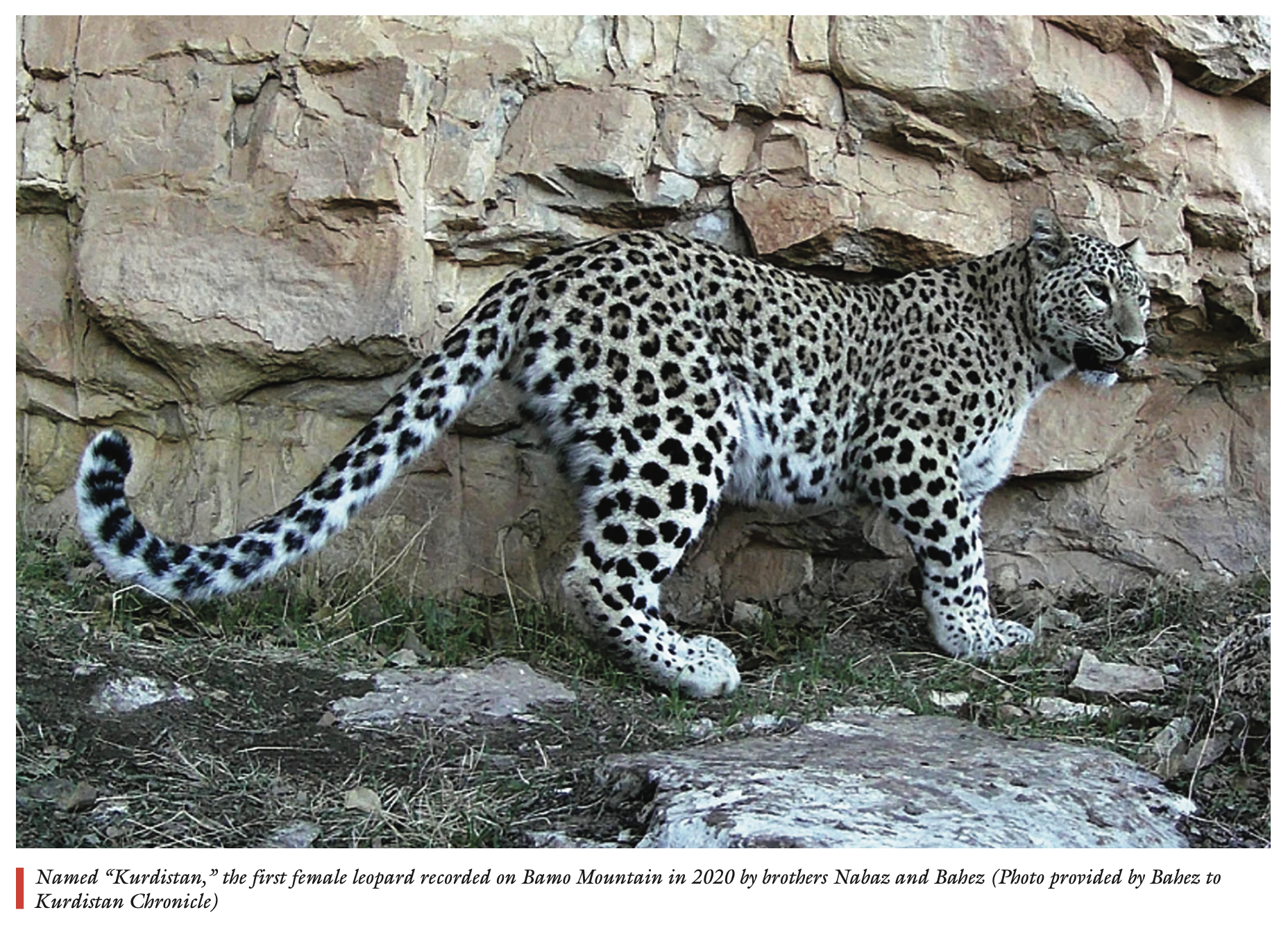 They decided to name her Kurdistan. It was the first time a leopard had been caught on camera in Bamo Mountain; previously, there had only been word-of-mouth sightings of leopards or documentation of their tracks.