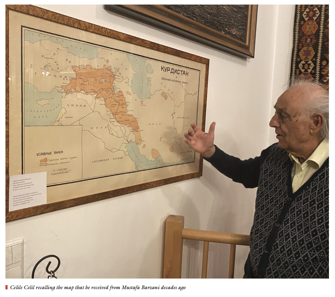That bright and special day became deeply engraved in my memory. Now, in Vienna, the map hangs on the wall of Casimê Celil’s library, where visitors admire it, along with the late General Barzani and Kurdistan.