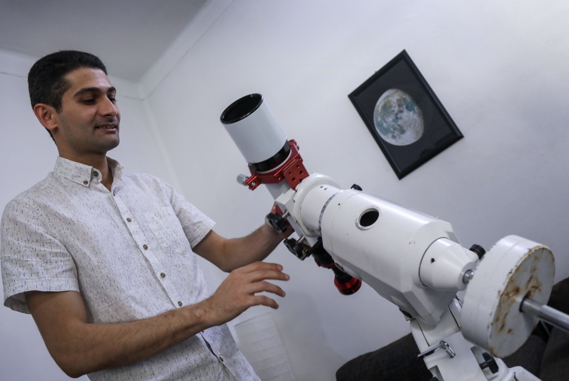 In 2017, his fascination with the cosmos led him to purchase his first telescope from Amazon – a simple children’s model, as it was all he could afford at the time. The telescope was confiscated at Erbil International Airport, and it took him three months to obtain security clearance to retrieve it. Once he had it, he started taking photos of the Moon and quickly noticed how much people appreciated his work.