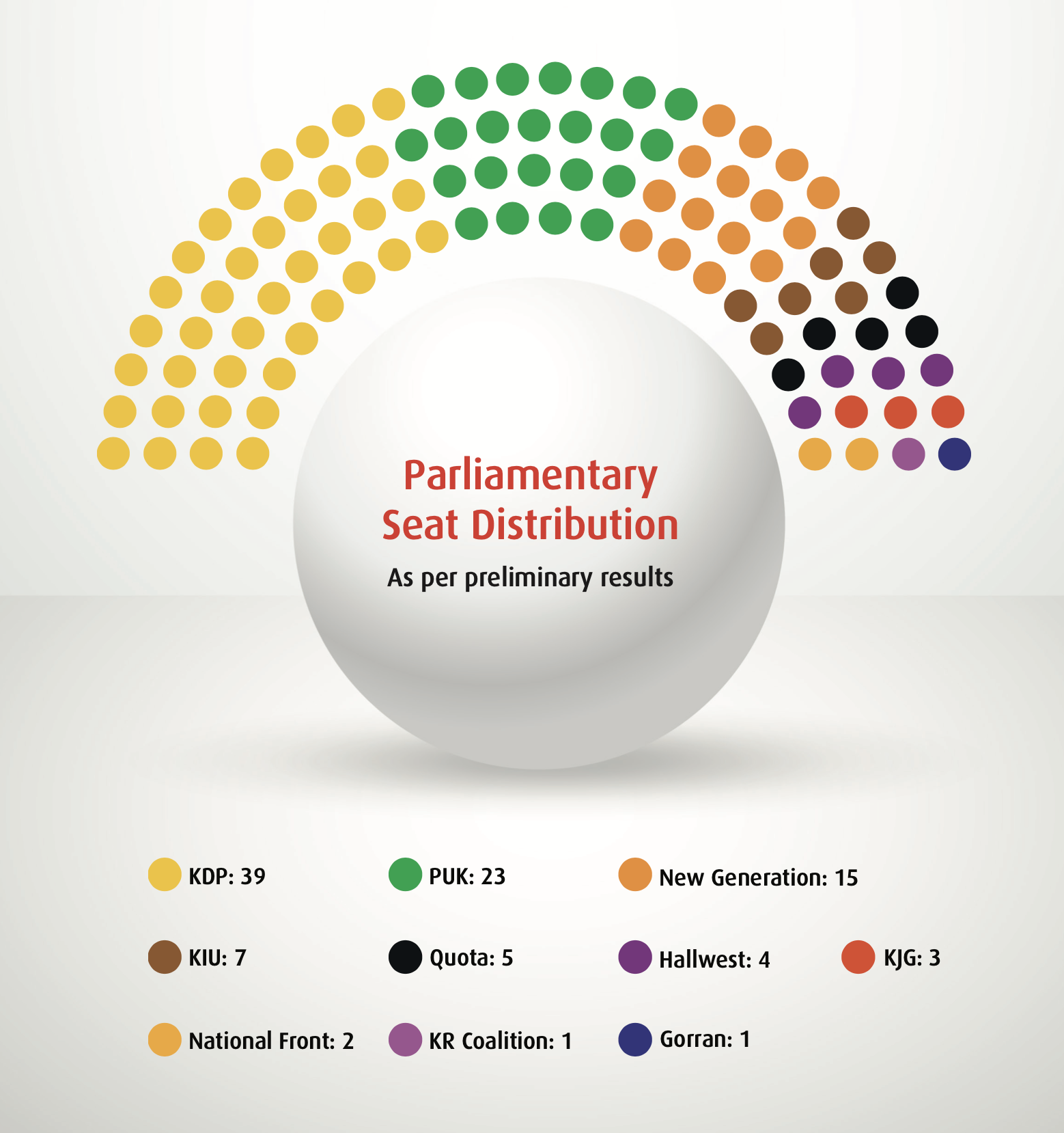 Similar to previous elections, the Kurdistan Democratic Party (KDP) and the Patriotic Union of Kurdistan (PUK) were the main competing players, joined by other parties and some new political groups.