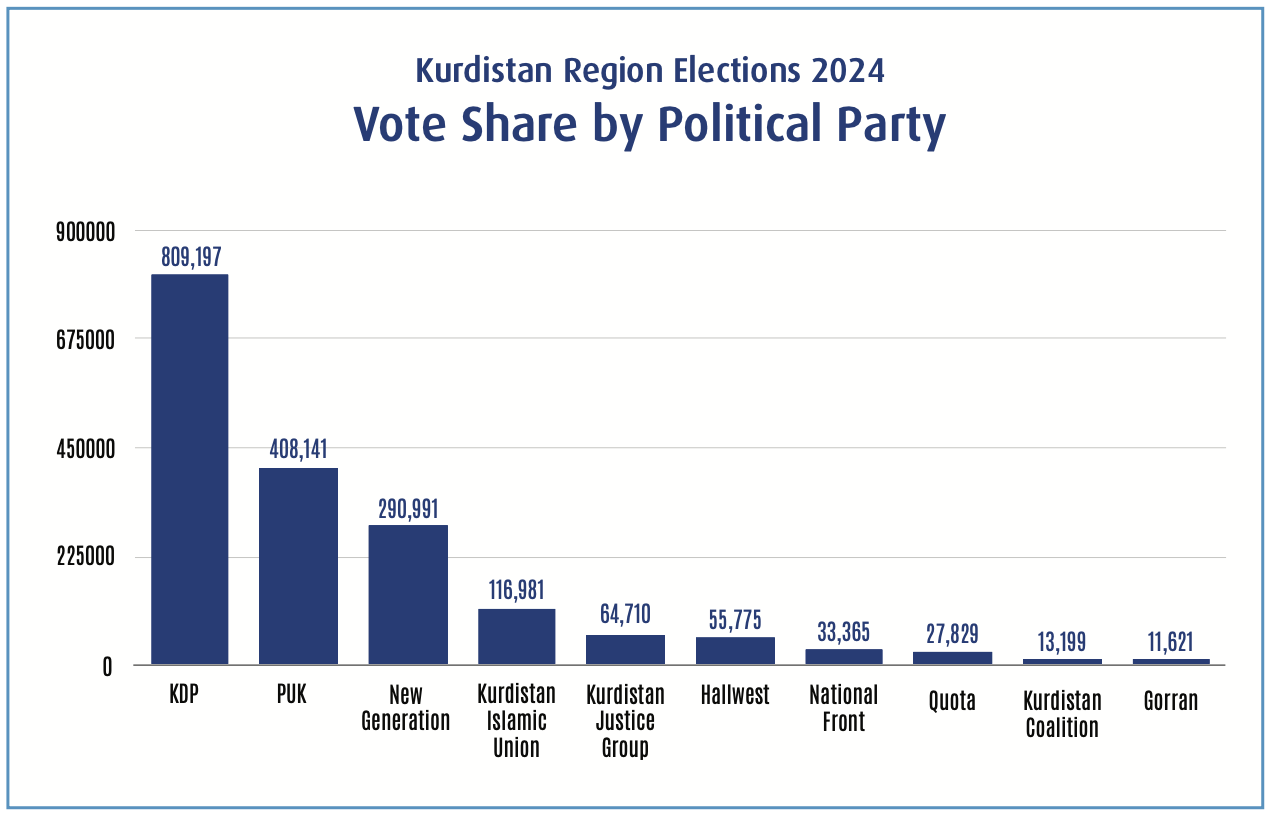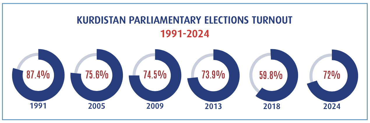 The 2024 parliamentary elections in the Kurdistan Region were largely accepted as a well-organized process. Iraq’s electoral commission oversaw the election, as the legal mandate of the Kurdistan Region’s High Independent Electoral Commission had expired in 2019.