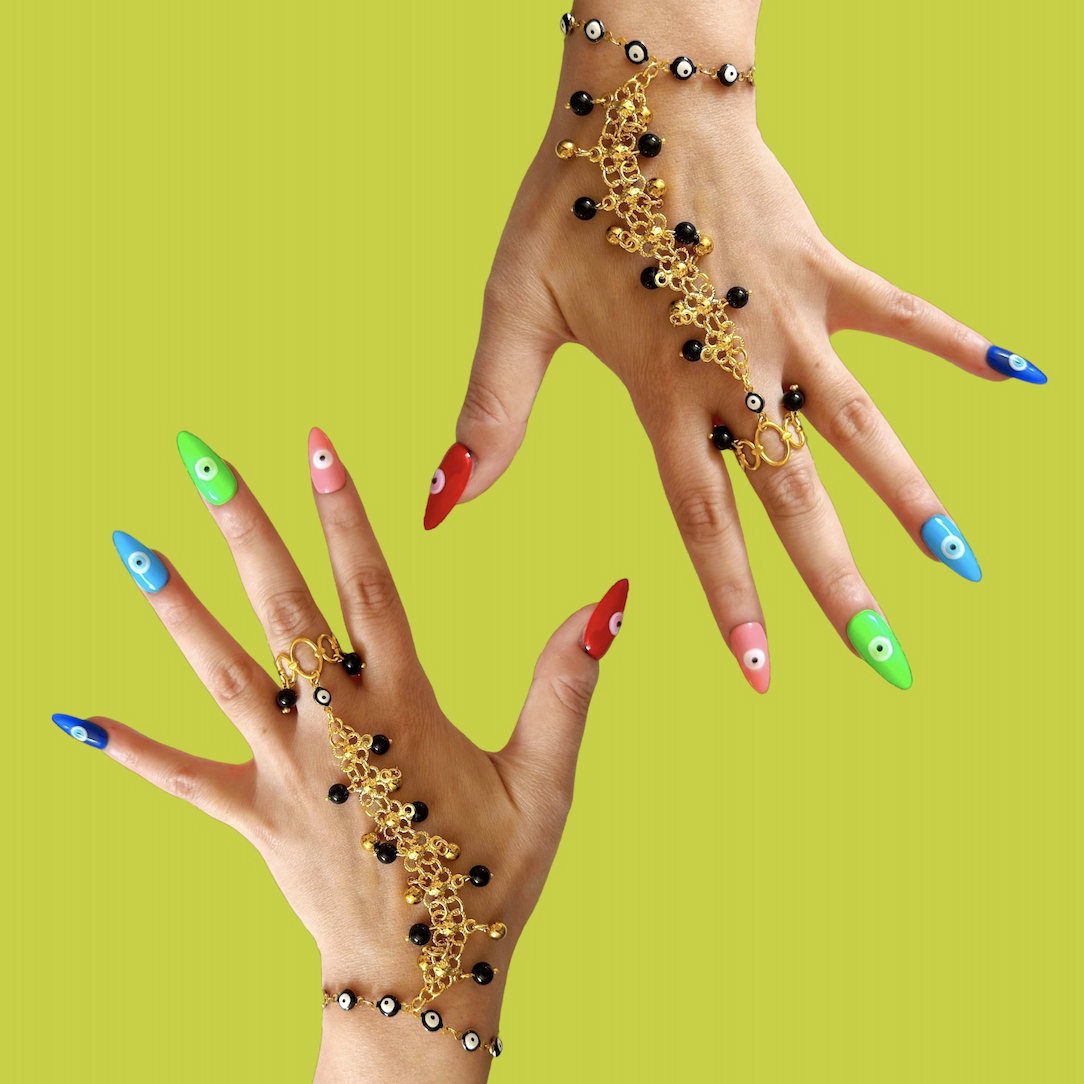 “My jewelry is very colorful, using symbols like the evil eye, pomegranates, and specific lettering, as well as plenty of gold. Jewelry isn’t merely an accessory, it’s a means of expressing yourself without the needs for words,” she added.