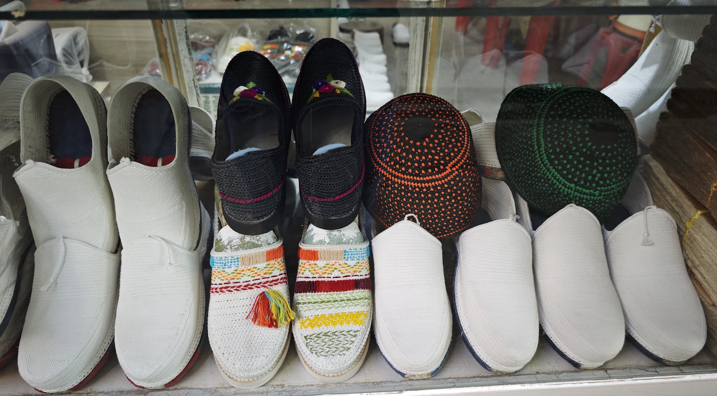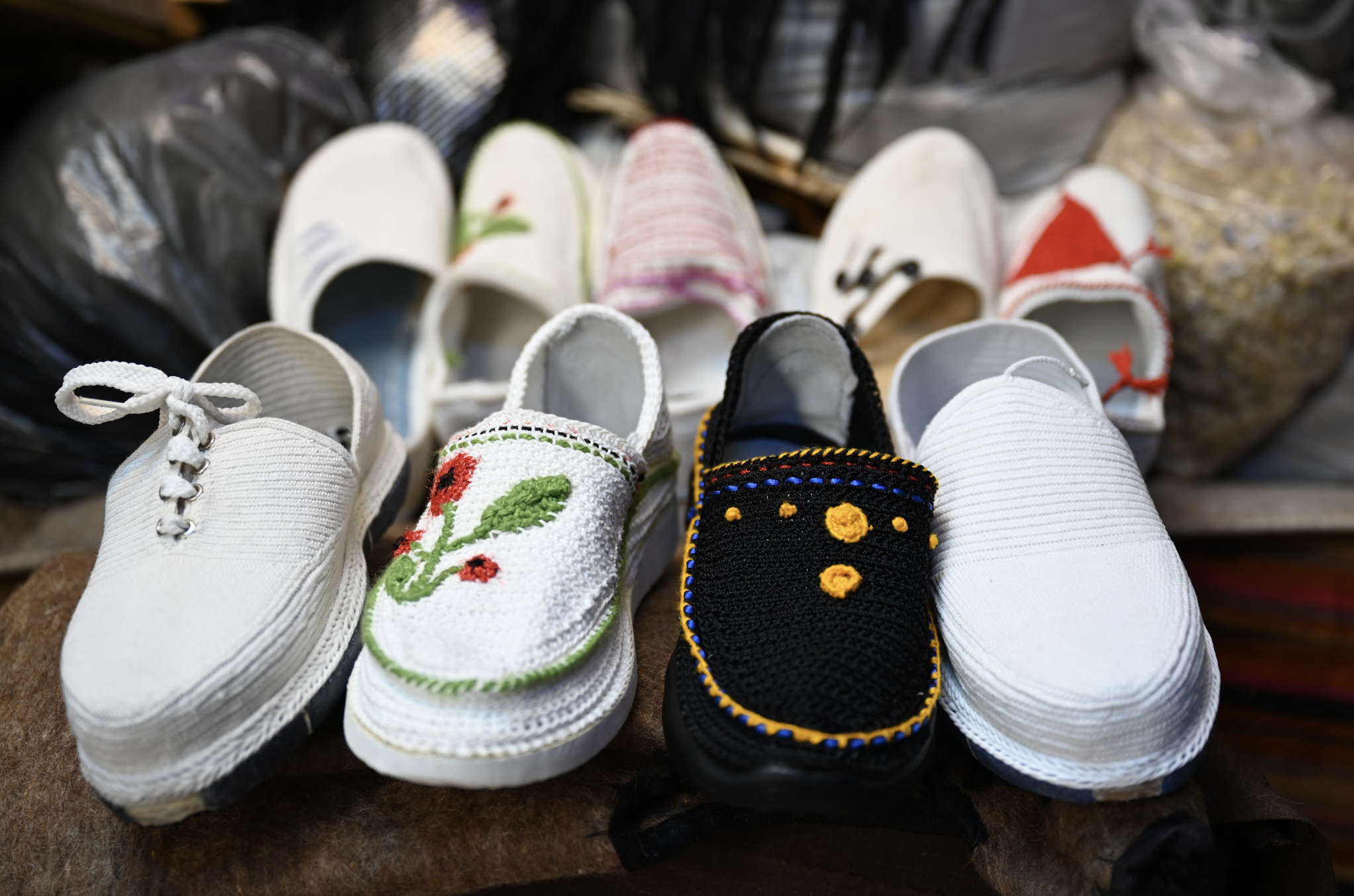 The material preparation first consists of dying and preparing the wool and cotton for weaving, which requires precision as well as attention to detail to make sure the colors match. The upper part of the shoe is woven by hand using a traditional loom, which involves creating unique shapes and designs. The shoe’s sole, on the other hand, is made from layers of compressed wool or leather, which are stitched together to create a durable base. The finishing touches – decorative needlework and stitching – are then added to the upper part to the sole.