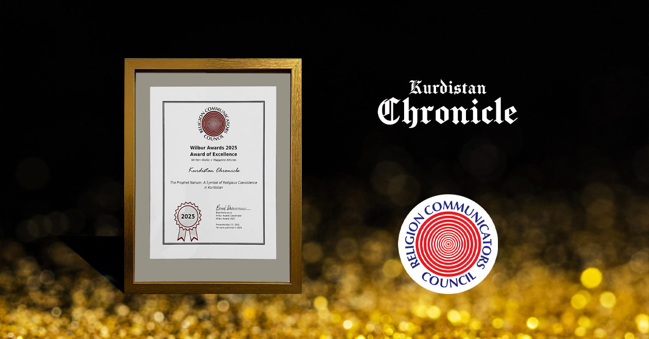 The Kurdistan Chronicle has received the prestigious Award of Excellence from the Religion Communicators Council (RCC) in the Written Works – Magazine category.