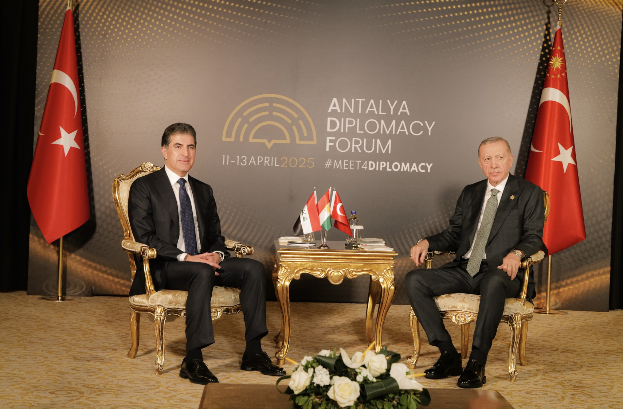 On April 11, the President of the Kurdistan Region traveled to Turkiye to participate in the fourth Antalya Diplomacy Forum, where he met with several top officials from the EU, Russia, Bulgaria, and Turkiye, including Turkish President Recep Tayyip Erdogan.