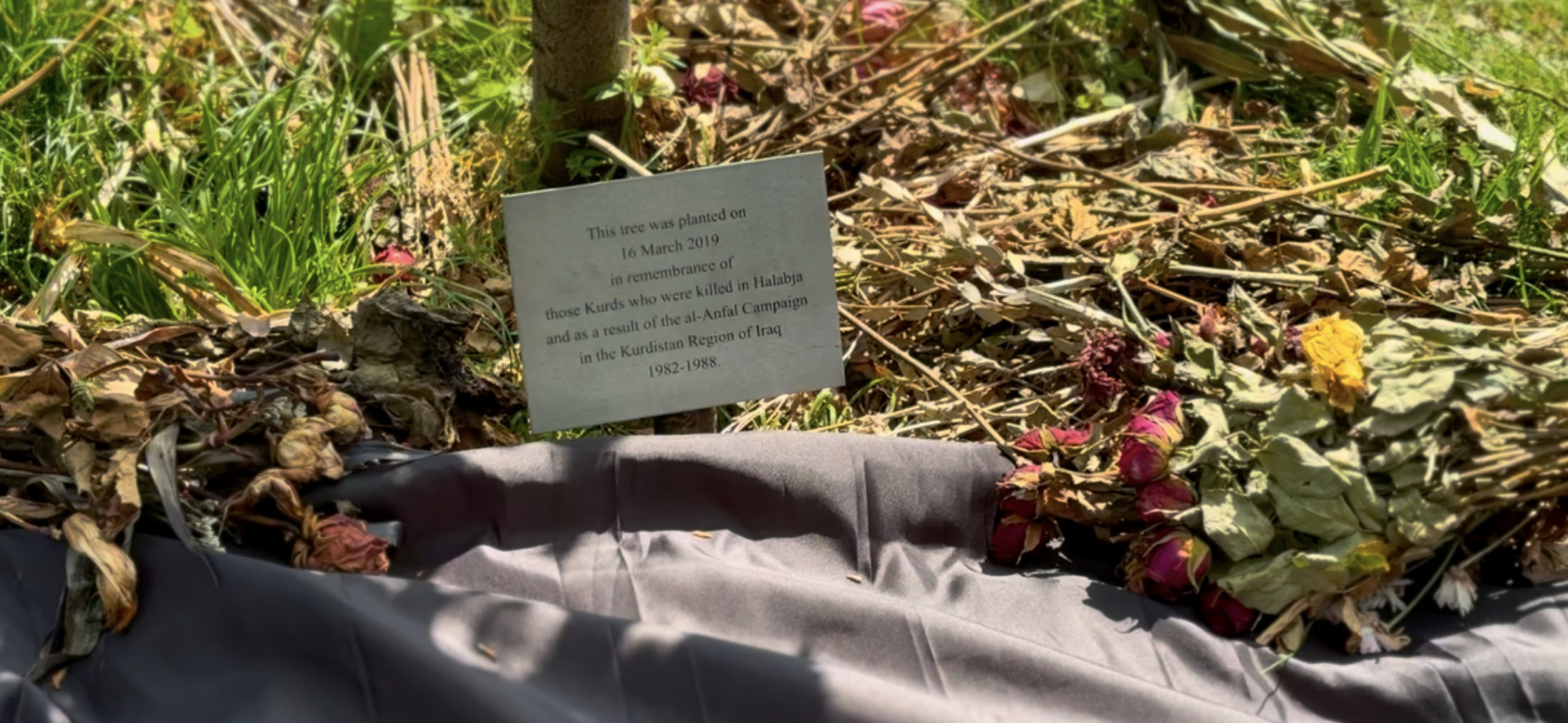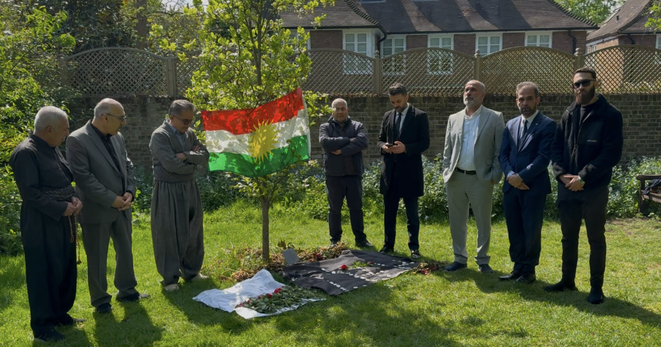 The memorial in Holland Park unfolded beside the “Halabja Tree,” a modest sapling planted in 2019 to honor the victims of the 1988 Halabja chemical attack. Though unassuming in stature, the tree has grown into a living monument – its roots intertwined with British earth, its legacy steeped in Kurdish sorrow.